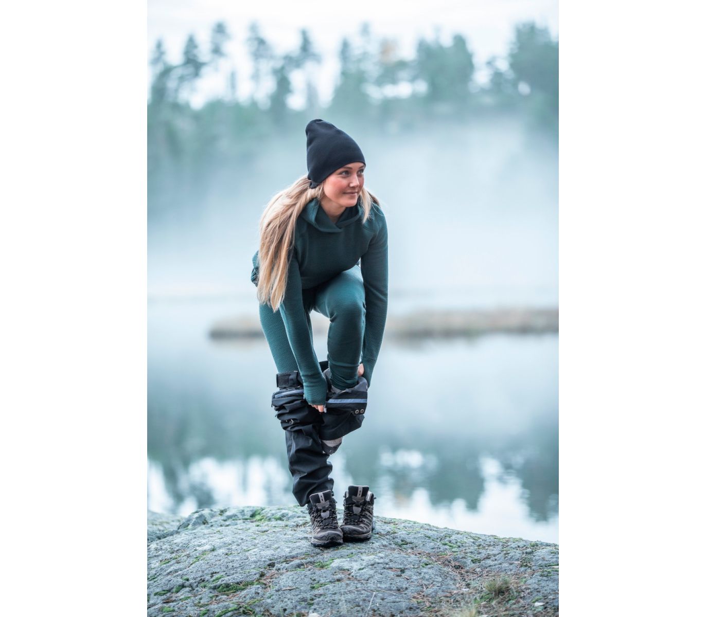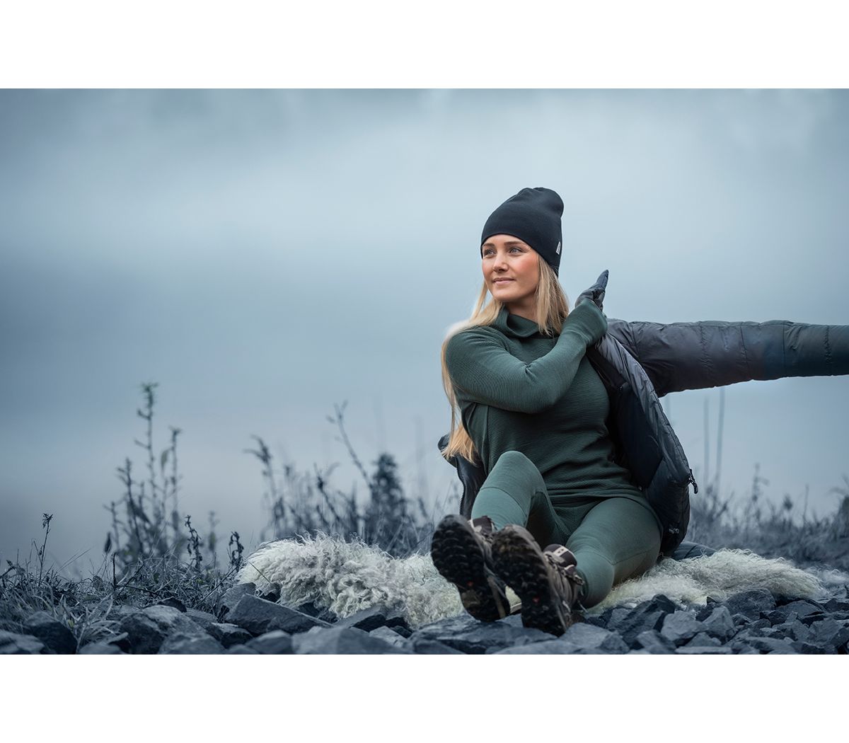 - 96% вовни мериноса у складі тканини поєднують утеплення, паропроникність і виняткову м‘якість. Еластан входить до складу манжетів і горловини.