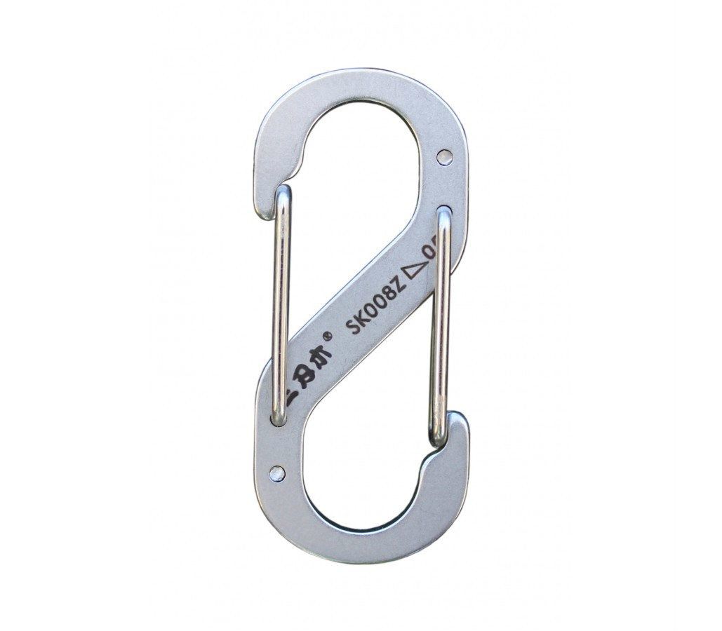 Карабін Sanrenmu 8 SK008Z - Модель мультитула Sanrenmu SK008Z виконана у вигляді вісімки або англійської літери «S». Даний стильний аксесуар може стати чудовим і недорогим подарунком, який власник зможе використовувати в якості брелока на ключі або прикріпити на ремінь або рюкзак. Для виготовлення даного мультитула використовується якісна нержавіюча сталь, яка також має високий рівень твердості, завдяки чому він не деформується під дією різних механічних впливів. Відмінною особливістю цього мультитула є наявність двох карабінів. У комплекті з моделлю кишенькового мультитула Sanrenmu SK008Z можна знайти спеціальне кільце для ключів.