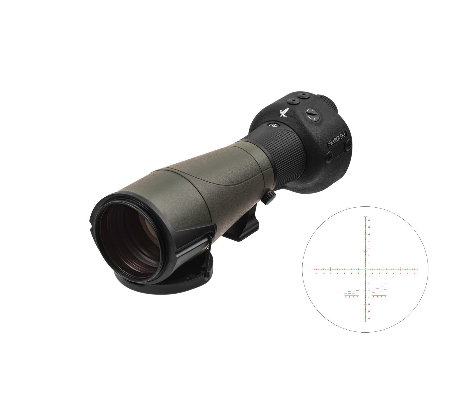 Особливого значення надається взаємозв'язку спостереження, оцінки та пострілу. Для таких вирішальних ситуацій SWAROVSKI OPTIK пропонує зорову трубу з прицільною сіткою STR 80.