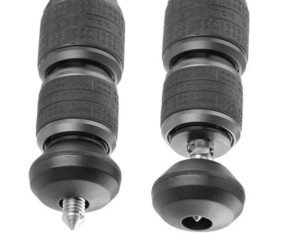 - Гумові протиковзкі п'ятки на нижніх секціях та сталеві шипи