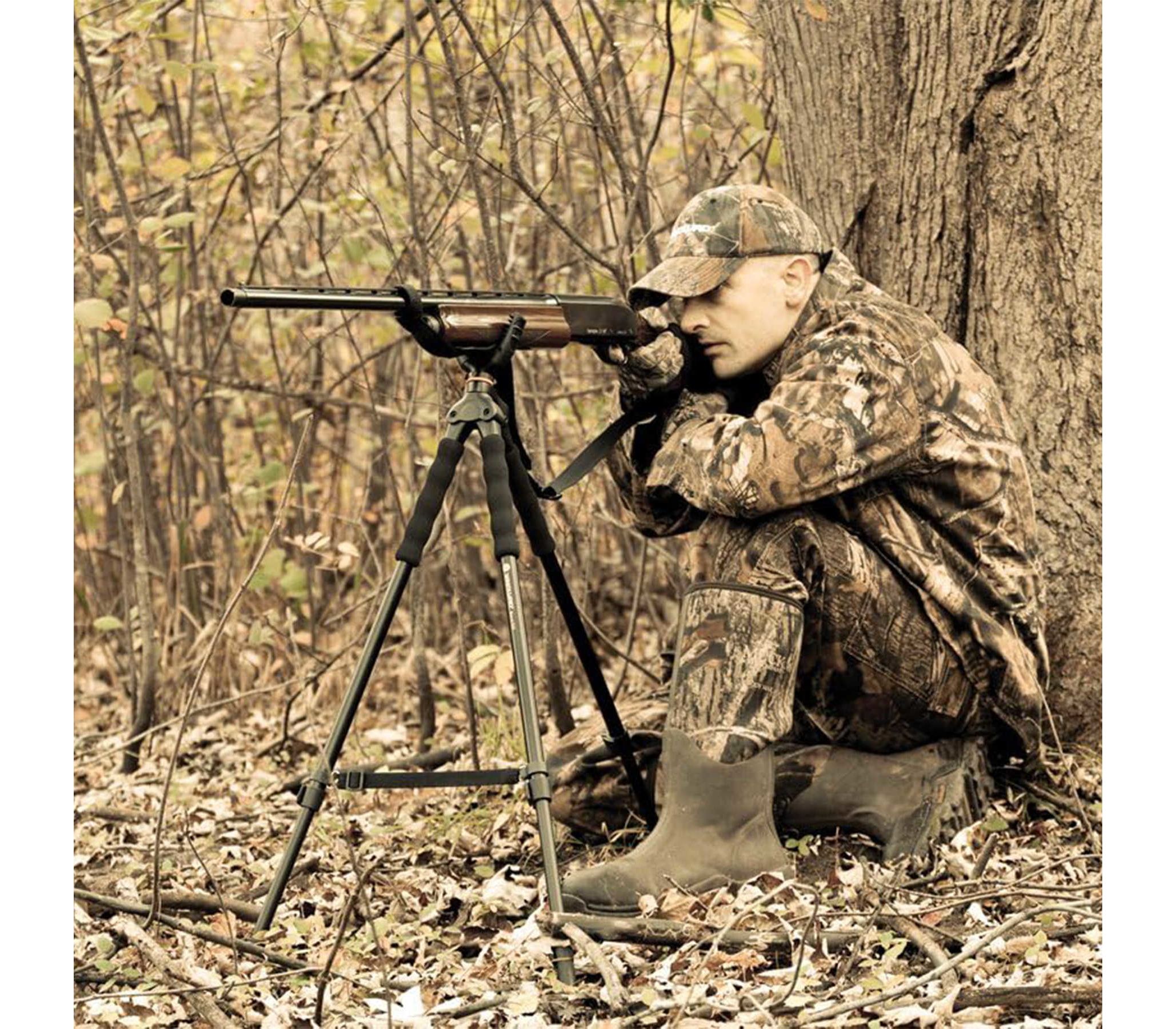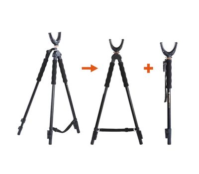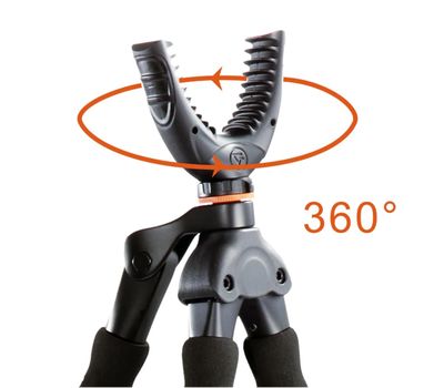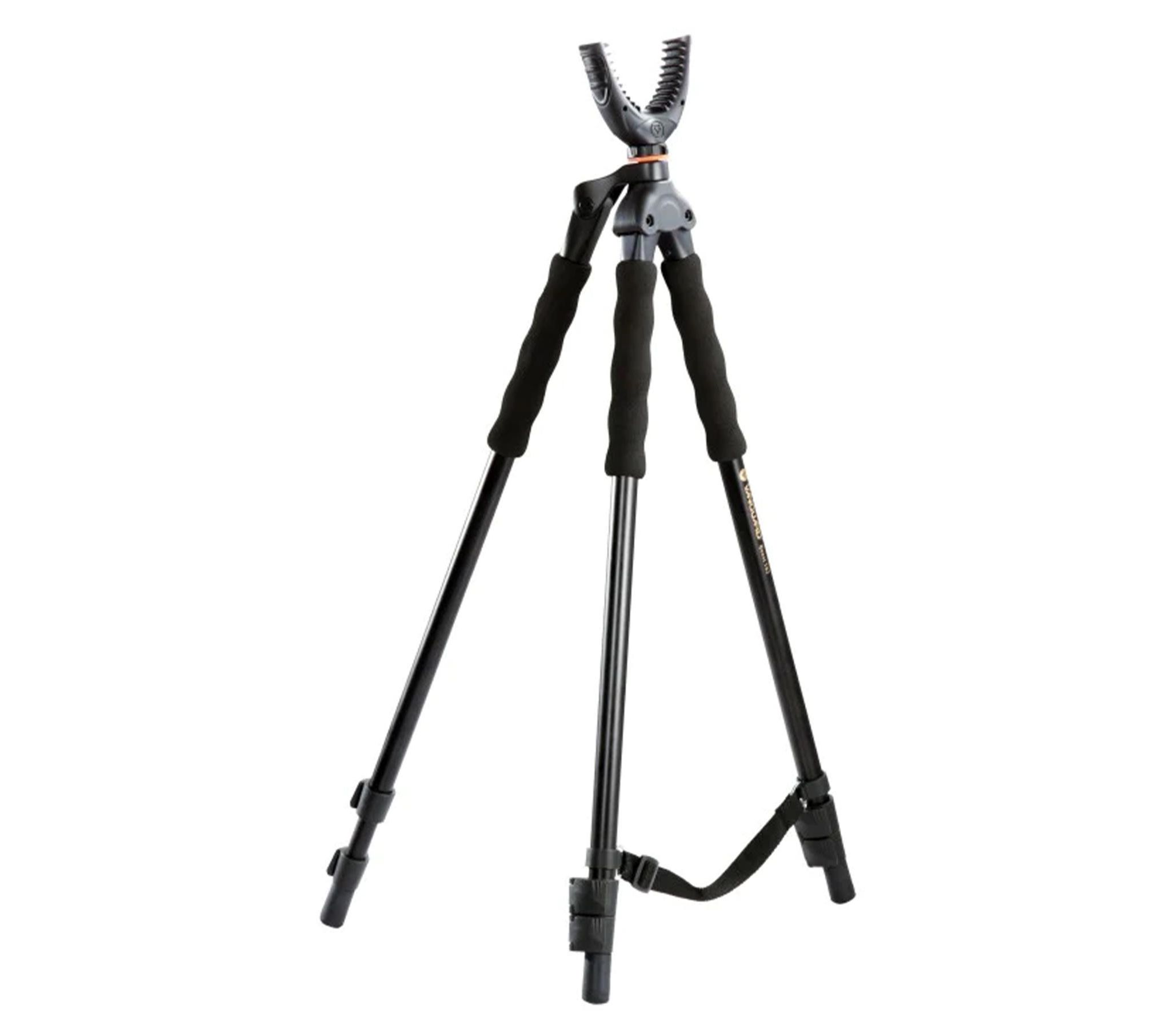 3 в 1 - трипод, біпод і монопод. Vanguard Quest T62U - один з найбільш функціональних, легких і зручних розкладних триподів для швидкого точного прицілювання і стрільби з положення стоячи, або сидячі. Стійкість трипода дозволяє вести прицільну стрільбу по малим цілям, таким як голуби та ховрахи. Широка поворотна прогумована U-подібна вилка підходить для зброї з цівкою практично будь-якої ширини, та надійно утримує зброю, забезпечуючи точність пострілу і швидкий поворот на 360° в горизонтальній площині. Відкидні ексцентрикові замки забезпечують швидке регулювання висоти і надійну фіксацію секцій трипода. Знявши верхню U-подібну вилку, трипод можна використовувати в якості штатива для прямого монтажу фотокамер, монокулярів або підзорних труб. Окрім того, знімна третя ніжка може слугувати у вигляді опорної палиці при пересуванні по складній місцевості.