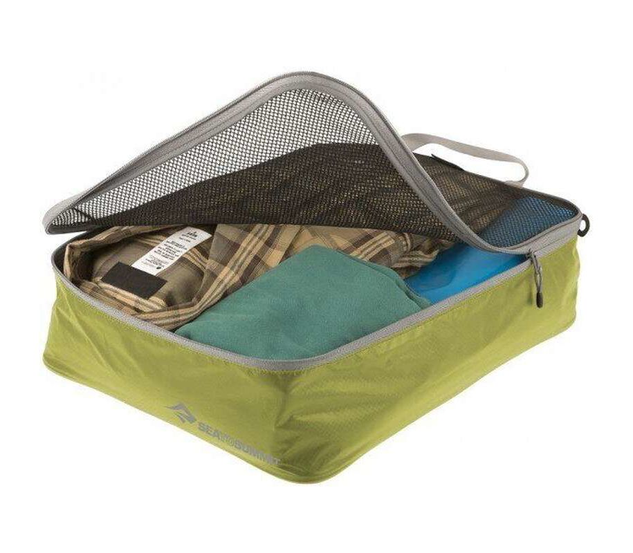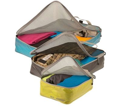Плоска прямокутна форма упаковки для одягу спрощує укладання речей, а також раціонально використовує місце в сумці або валізі. Верхня кришка з сітки створює швидкий візуальний контакт з речами, а ультралегкі матеріали не обтяжують вашу сумку. Кожен розмір чохла створений під відповідні типи одягу. Малий призначений для нижньої білизни, купальників, шкарпеток та інших аксесуарів, тоді як середній і великий вміщують шорти, штани або светри.