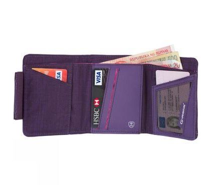 Цей класичний гаманець з зашитою RFiD, просторий, виконаний з водостійкої тканини, з двома відділеннями для купюр, двома кишенями на блискавці для монет, і з відділеннями для пластикових карток. RFiD захищає вміст гаманця від радіочастотних ідентифікаторів (RFID), зупиняючи передачу інформації через поліефірну тканину з покриттям з нікелю і міді, що знижує ризик крадіжки ідентифікаційної інформації.