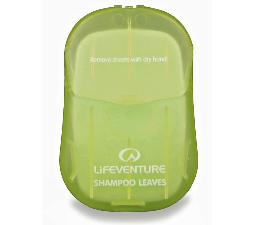 Мило-шампунь Lifeventure Shampoo Leaves - тонкі одноразові пластинки з приємним запахом для миття голови. Одна упаковка містить 50 тонких мильних пластинок, які виглядають як листки паперу. Діставати пластинки слід сухими руками, щоб уникнути їх злипання. Ці мильні листочки прекрасно піняться як в прісній, так і в солоній воді. Підходять для тих, хто хоче мінімізувати вагу свого рюкзака. Є біорозкладаними, тому не завдають шкоди навколишньому середовищу.