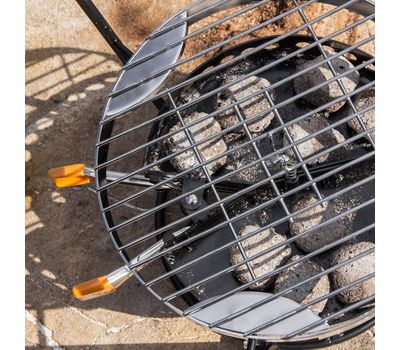 • У поєднанні з фіксатором кришки та вугільним лотком утворює портативний гриль.