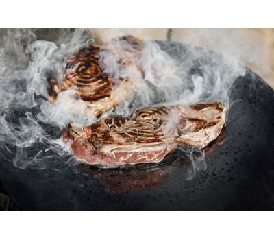 На плоскій сталевій плиті можна одночасно готувати кілька страв у різних температурних режимах. Проолієна сталь набуває природних антипригарних властивостей під час використання — чим частіше ви на ній смажите, тим міцніше стає захисне покриття. Крізь отвір посередині легко завантажувати паливо у мангал.