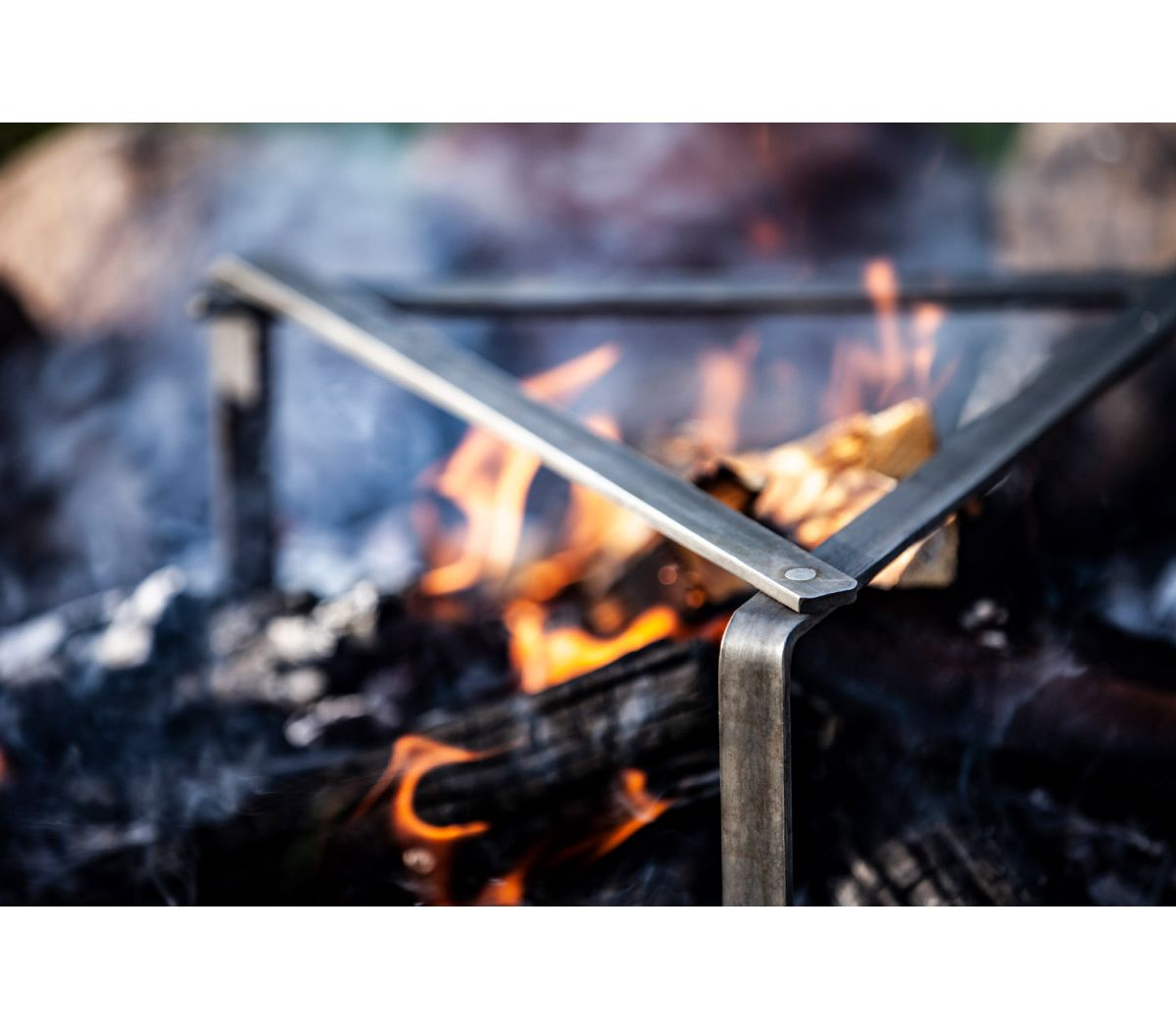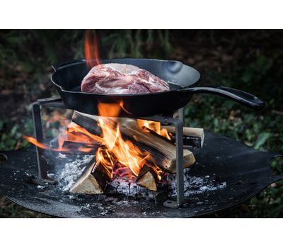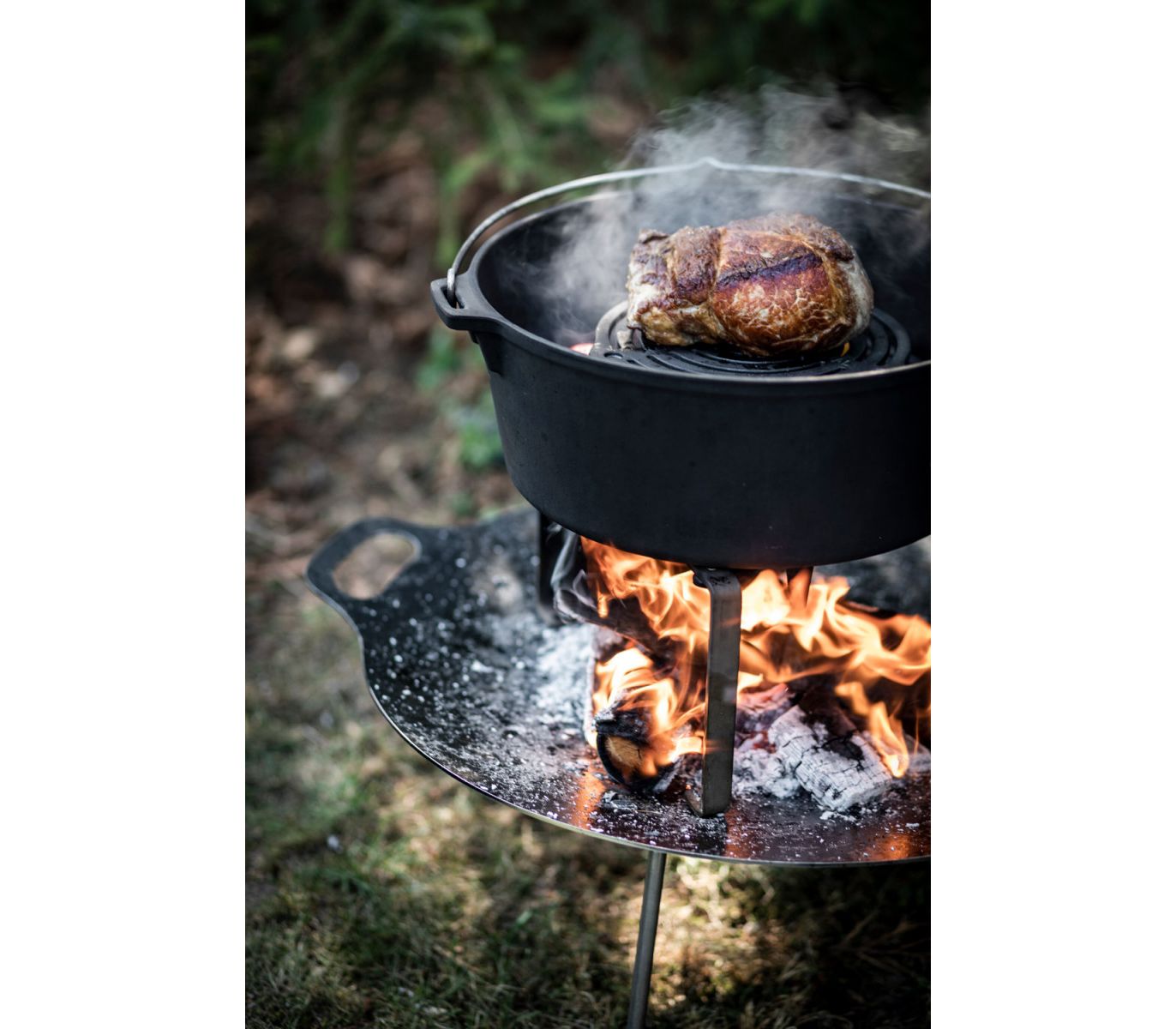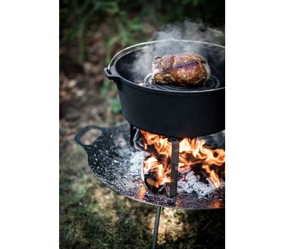 Сталева платформа Petromax Cooking Stand перетворює звичайне кемпінгове вогнище на польову кухню. Дозволяє ставити на вогонь будь-який посуд: від легкої кованої сковорідки Petromax Wrought-Iron Pan до повністю завантаженої чавунної жарівні Petromax Dutch Oven.