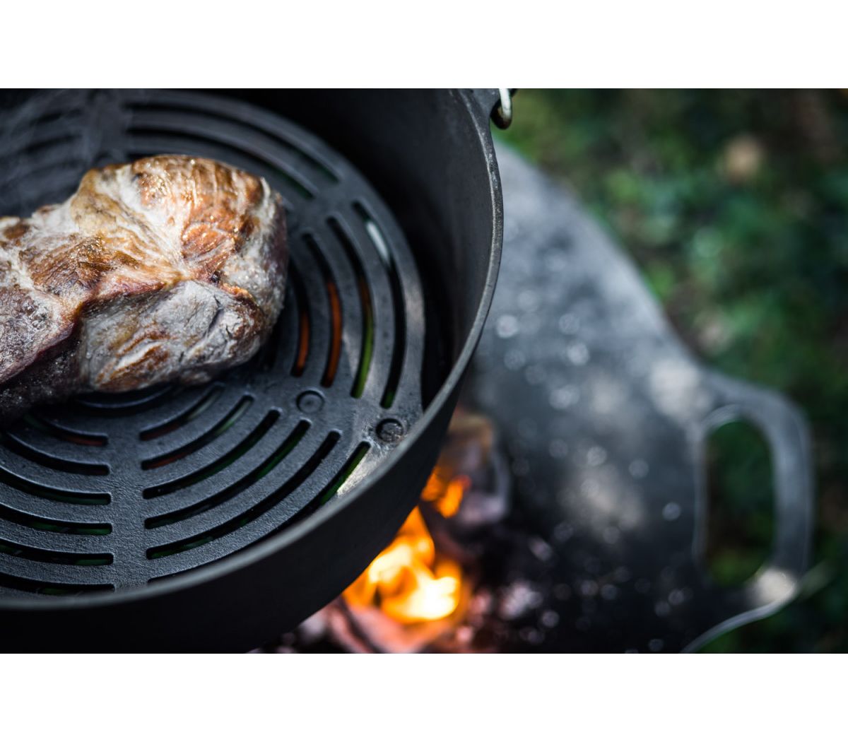- Висота ніжок 4,8 см дозволяє підняти їжу над вогнем або дном чавунної жарівні, щоб отримати ідеальну скоринку та копчений аромат.