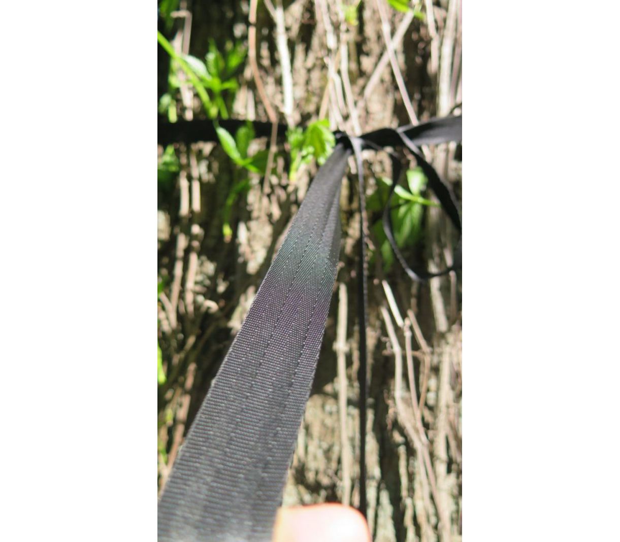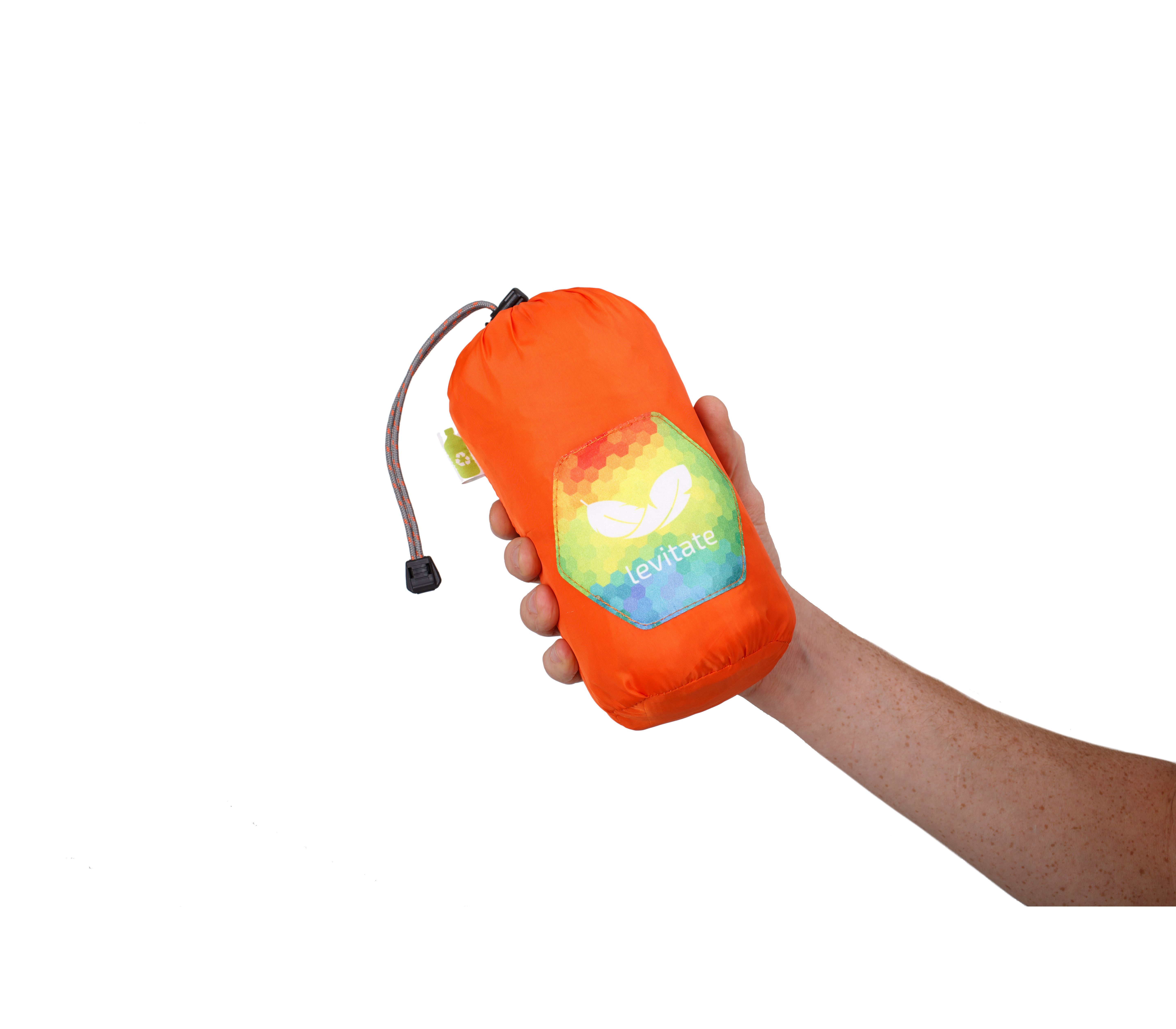 Гамак зроблений з поліестеру, вироблений з перероблених пластикових пляшок. Це волокно сплелося в міцну і дихаючу тканину. Стропи виконані так само з переробленого матеріалу. При розробці подбали щоб стропи були як ремені безпеки: завдяки особливому жорсткому плетіння стропа не боїться тертя і великих навантажень, а її оптимальна ширина розподіляє вагу, не завдаючи шкоди корі дерева. Гамак неймовірно міцний і довговічний. Чохол пришитий до самого гамаку, що виключає його втрату і може служити як підставка для пляшки або фляги.