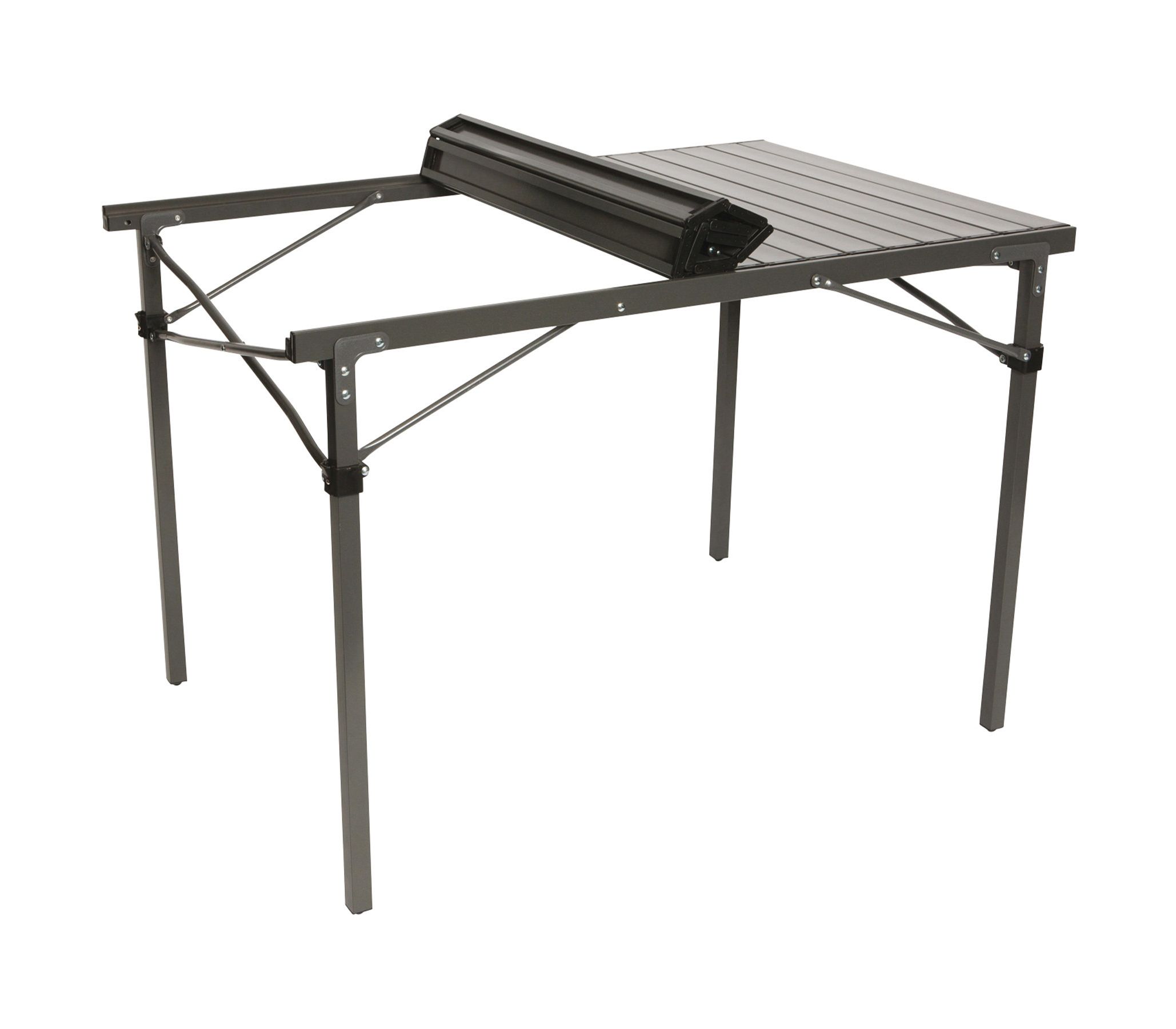 Кожному, хто шукає компактний у складеному вигляді, легкий, надійний та довговічний кемпінговий стіл, за яким вільно може розміститися компанія з 6-8 осіб, варто звернути найпильнішу увагу на Стіл Bo-Camp Laminated Solid 105x70 cm. Завдяки повністю алюмінієвій конструкції, стіл не сприйнятливий до впливу вологи, УФ-випромінювання, високих температур, і при цьому досить легкий. Безперечною перевагою є його конструкція, що дозволяє скласти великий стіл у компактний чохол у формі тубуса та переносити на плечі.
