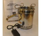 Піч похідна, що працює на твердому паливі – тріска дерева, торф, пелети, шишики і т д(крім кам'яного вугілля). Виготовлена з нержавіючої сталі товщиною від 0,4-0,7 мм.Для забезпечення максимального згоряння палива, використовується активний нагнітач повітря, що працює на елементах типу АА (2шт).