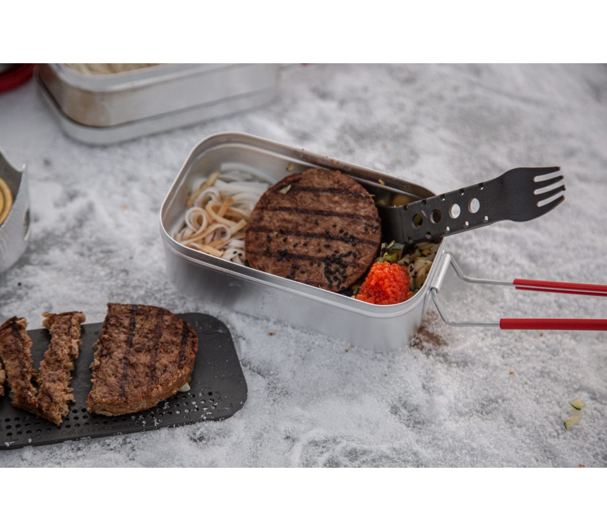 - Мерило для сырого риса и воды в контейнере Trangia Mess Tin.