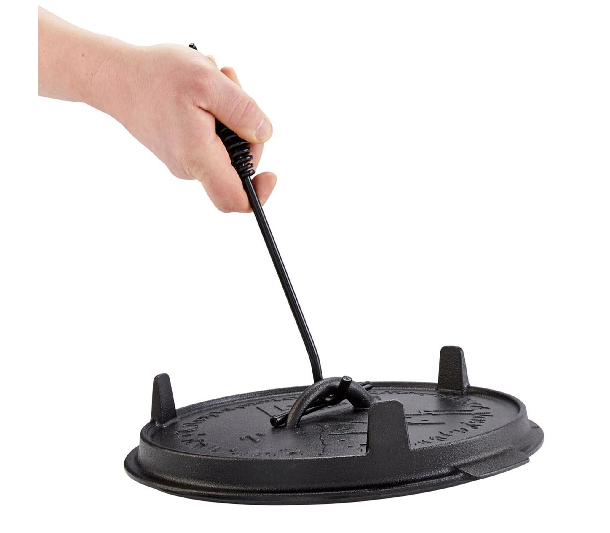 Ергономічне протиковзке руків’я з термозахистом забезпечує комфортне утримання навіть у рукавицях. Спеціальна форма гачка надійно фіксує кришку на підйомнику, не даючи їй зісковзнути під час підняття. Інструмент також чудово підходить для підкидання вугілля або зміщення жару.