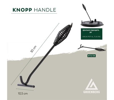 Підйомник кришки Groenberg Knopp Handle — це незамінний аксесуар для власників казанів серії Groenberg Askja або казанів типу Dutch Oven і інших подібних казанів з кришками. Виготовлений із міцної кованої сталі, підйомник дозволяє легко знімати розпечену кришку, не обпікаючи рук та не ризикуючи зрушити або перекинути страву.