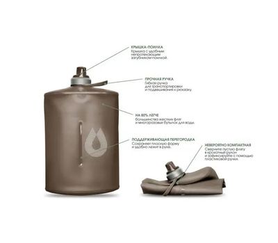 М'яка фляга HydraPak Stow 1 л - вірний супутник у всіх ваших подорожах &mdash надлегка минималистичная м'яка фляга HydraPak Stow. Вона зручно лежить в руці і без зусиль поміщається в кишеню рюкзака завдяки підтримуючій внутрішній перегородці. Продуманий загубник-поїлка забезпечує потужний потік води і не протікає під час транспортування фляги. Для зручного перенесення і кріплення до рюкзака за допомогою карабіна в Stow передбачена міцна пластикова ручка.