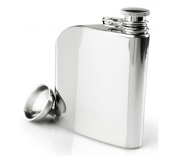 Стильна фляга з нержавіючої сталі для спиртних напоїв місткістю 177 мл.елегантна, зручна і легка, прекрасно поміщається в кишеню куртки. Кришка прикріплена до горловини сталевим кріпленням, тому не має шансів загубитися. У комплекті йде воронка для зручного наповнення фляги.