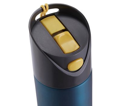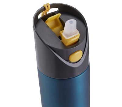 - Фляга відкривається простим натисканням на кнопку і закривається також в один дотик, натисканням на питний носик.