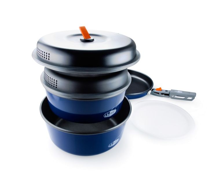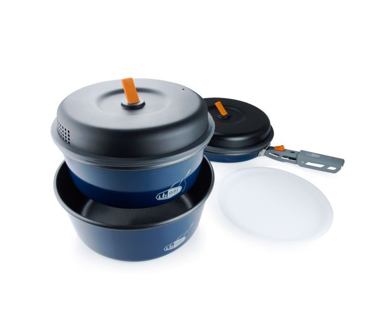 Компактний і універсальний набір посуду для різних завдань: від походів до простого кемпінгу. До складу набору входять: півтора літрова каструля, дволітрова каструля, сковорода, дві кришки-ситечка для каструлі, дошка для оброблення, ручка-хваталка, чохол.