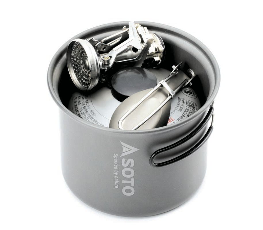 Легкий і компактний набір посуду для походів. У комплект входить великий казанок для основних страв з кришкою-сотейником для других страв або гарячих напоїв. Кришкою-сотейником можна накривати казанок при приготуванні щоб заощадити час і газ. Ручки казанків зроблені прогумованими щоб не отримати опіки рук при зніманні гарячого Казанка з вогню. Посуд зроблений з анодованого алюмінію для підвищення стійкості до ударів, подряпин і корозії. Анодований алюміній набагато легше відмивати і практично не покривається гаром під час приготування. Розміри Казанка адаптовані для розміщення всередині невеликий складаний пальника, таких як Amicus, Compact або Windmaster, і газового балона об'ємом на 110 або 230 грам якщо з газовим пальником, або газового балона на 450 грам.