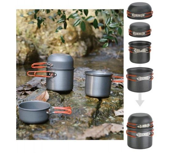 Дуже легкий і компактний набір портативного посуду FMC-208, важить лише 448г. зроблений з анодованого алюмінію, жароміцного і стійкого до зносу, який легко мити. Розрахований на 2 осіб. У комплект входять два Казанка з мисками, які при необхідності можна використовувати як кришки. У Великий казанок можна прибрати маленький, а в останній, в свою чергу, змінний газовий картридж і пальник (наприклад, FMS-102, FMS-103, HEAT CORE FMS-116T, MINI FMS-116 ). Всі елементи, яких ви торкаєтеся при приготуванні, оснащені термоізолюючим покриттям, дуже приємним на дотик при експлуатації.