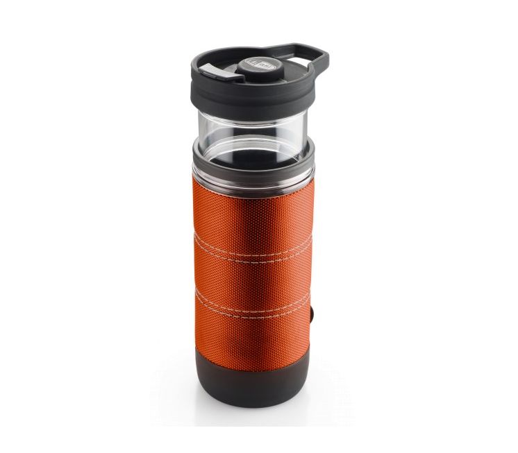 Термокружка з можливістю заварити і віджати каву. Для цього засипаємо кілька ложок меленої кави, заливаємо окропом, чекаємо кілька хвилин, віджимаємо за допомогою вбудованого Преса. Кава готова!