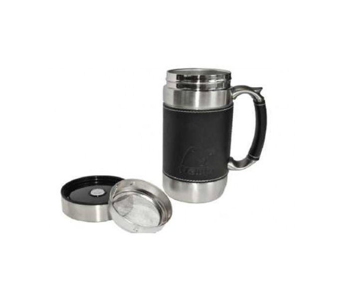 Подарункова термокружка, обшита шкірою, з ситечком для заварювання чаю.