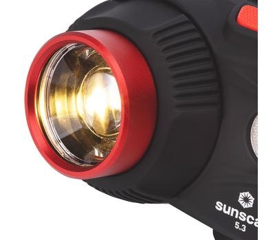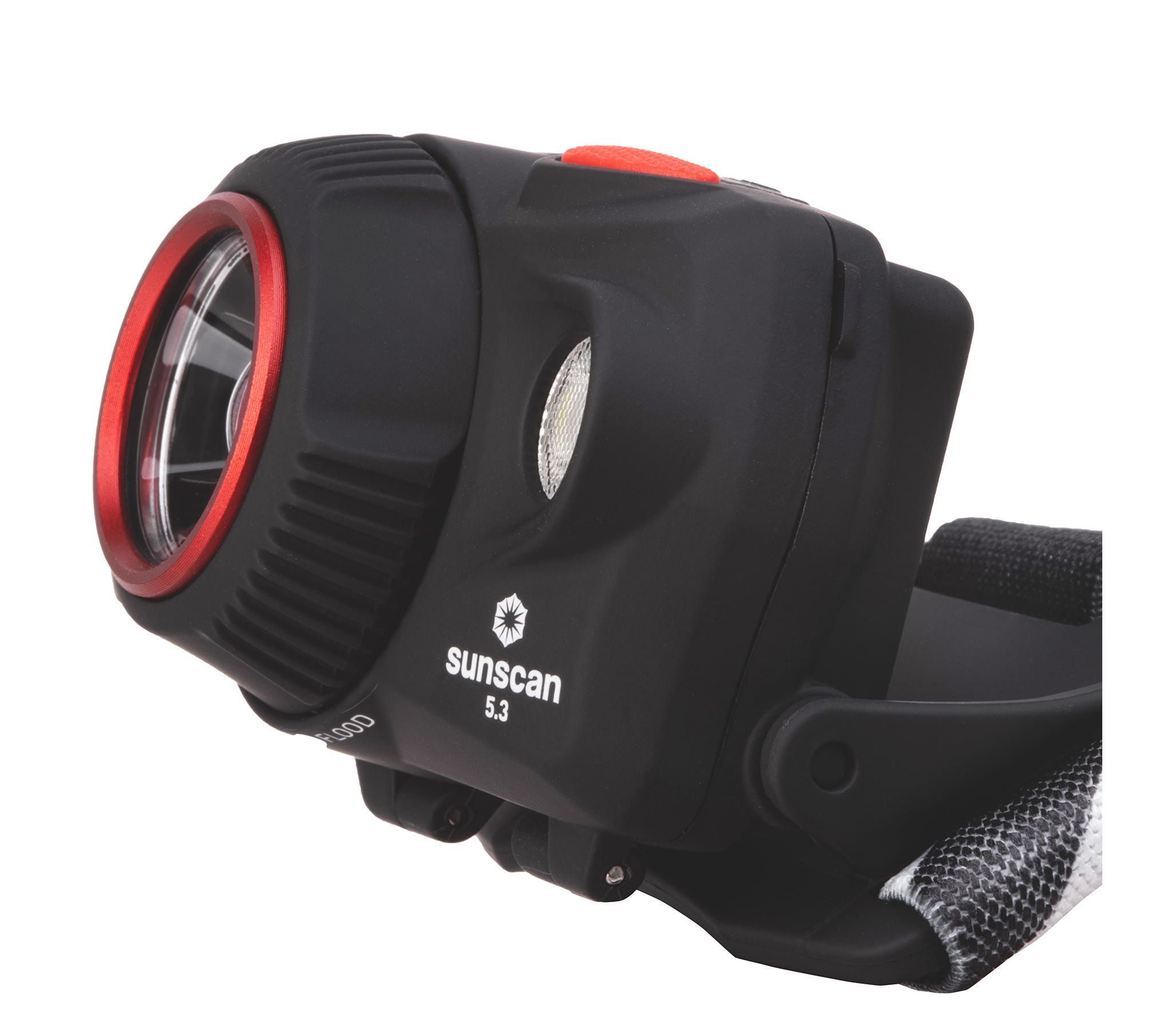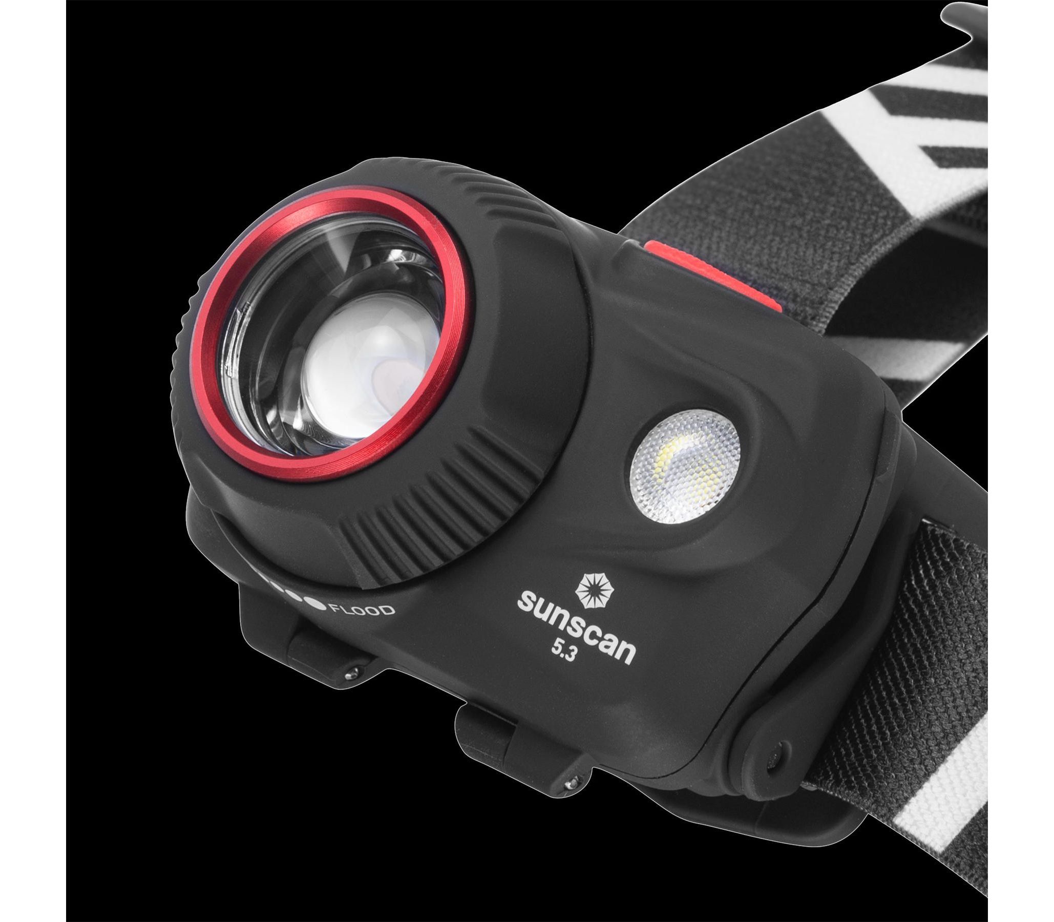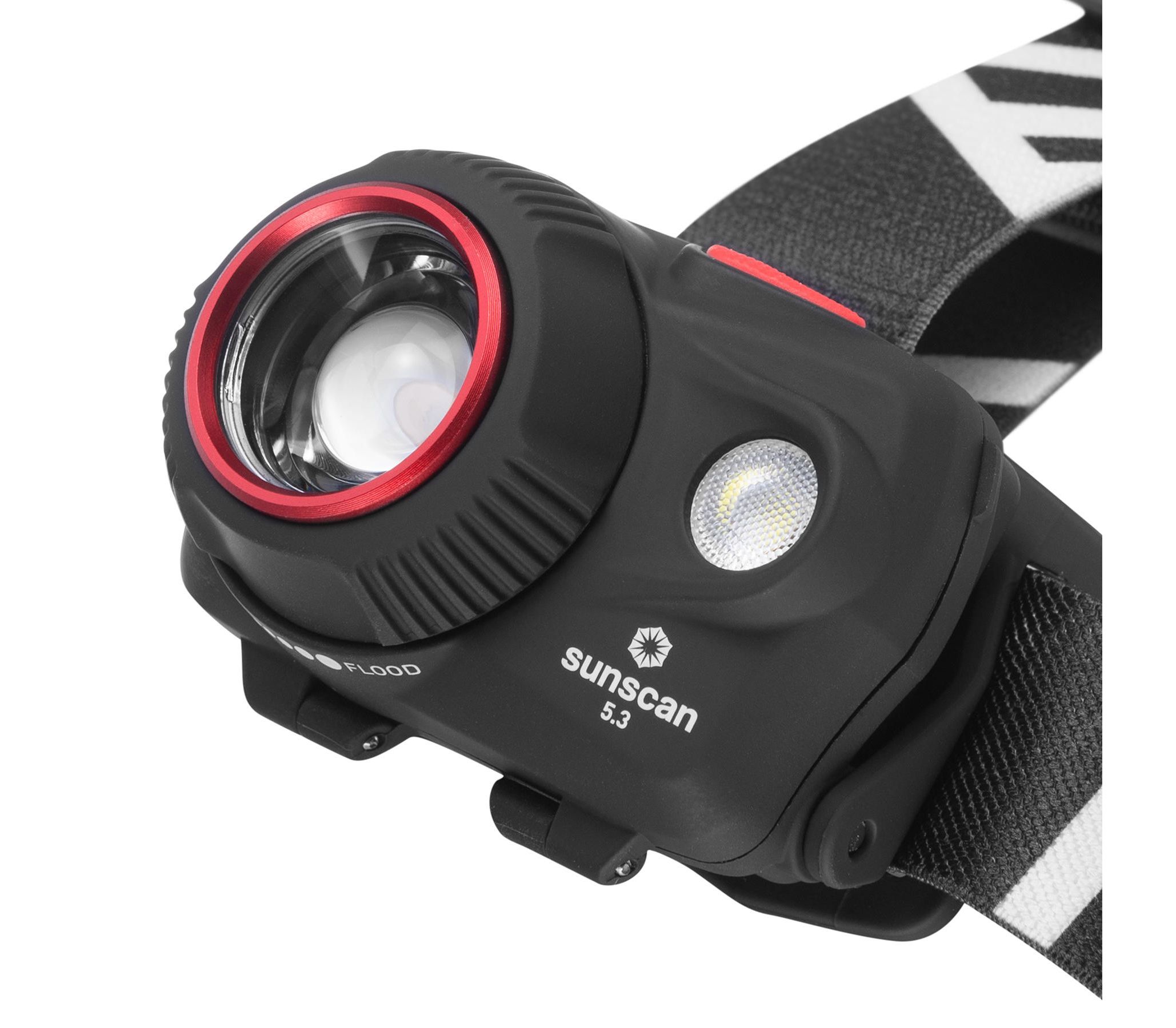 Висувна лінза плавно регулює ширину променя. Завдяки цьому Mactronic Sunscan 5.3 здатний ефективно освітлювати як місцевість на відстані до 123 метрів, так і освітлити предмети перед вами. Ремінець із внутрішньої сторони покритий силіконом, завдяки якому він добре тримається на голові або головному уборі, а також додатково має маківковий пасок для кращого балансування. Крім того, система альтернативного живлення DSS™ дозволяє використовувати батарейки ААА - одні з найдешевших і найпоширеніших. Кут нахилу ліхтаря регулюється у шести положеннях.