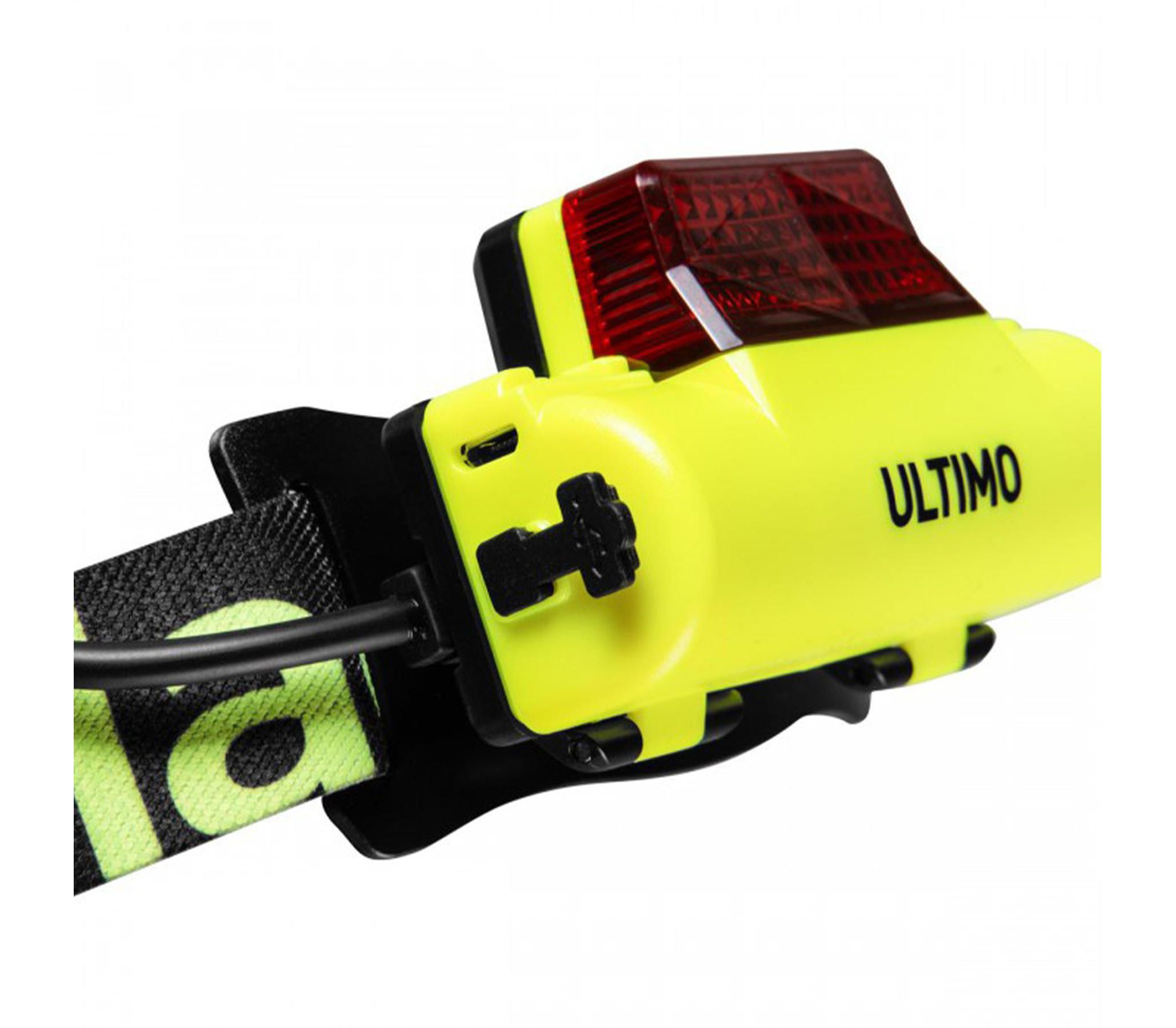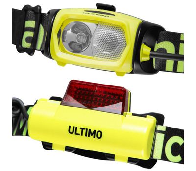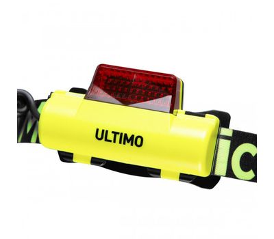 Алюмінієвий рефлектор створює досить широкий, і при цьому дальнобійний промінь світла основного діода, здатний освітлювати територію на відстані до 140 м, а зсувний прозорий дефлектор створить розсіяний промінь для підсвічування ближнього поля. Також ліхтар оснащений додатковими діодами червоного кольору на корпусі самого ліхтаря та на акумуляторному відсіці, які можуть працювати в режимі постійного світла або миготіння. Вони служать для подачі помітних сигналів, та підійдуть для переміщення на дорогах, на виробництві, будівництві чи будь-якому іншому місці з активним рухом транспорту. Акумуляторний відсік стягнутий гвинтами для запобігання випадковому відкриванню або потраплянню вологи всередину. Кут нахилу ліхтаря регулюється в семи положеннях в межах 45º. Все це робить Mactronic Ultimo відмінним вибором для широкого кола фахівців на виробництві чи будівництві, любителів зимового туризму, велосипедистів, і, навіть, спелеологів.