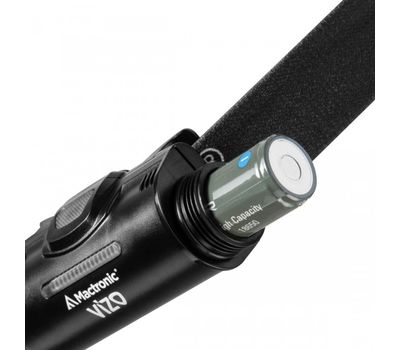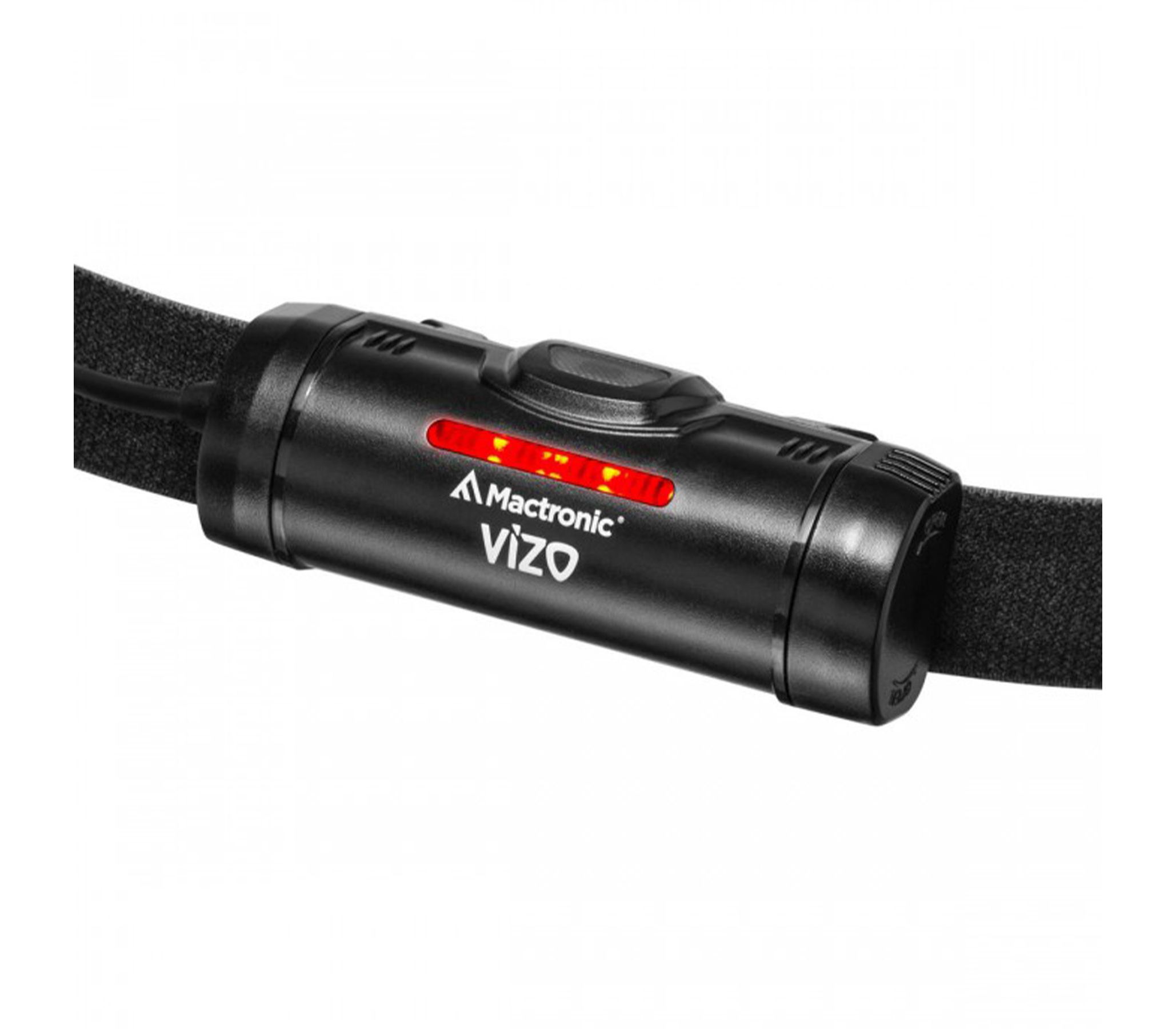 Алюмінієвий рефлектор з рифлене склом з ударостійкого полікарбонату створюють досить широкий, і при цьому дальнобійний промінь, здатний освітлювати територію на відстані до 100 м. Також ліхтар оснащений додатковим діодом червоного кольору на акумуляторному відсіці, який може працювати в режимі постійного світла або миготіння. Він служить для подачі помітних сигналів, та підійде для переміщення на дорогах, на виробництві, будівництві чи будь-якому іншому місці з активним рухом транспорту. Акумуляторний відсік обладнаний надійною кришкою на різьбі для запобігання випадковому відкриванню або потраплянню вологи всередину. Кут нахилу ліхтаря плавно регулюється в межах 0º - 90º. Все це робить Mactronic Vizo відмінним вибором для шанувальників зимового спорту і туризму, велосипедистів, спелеологів та фахівців на виробництві чи будівництві.