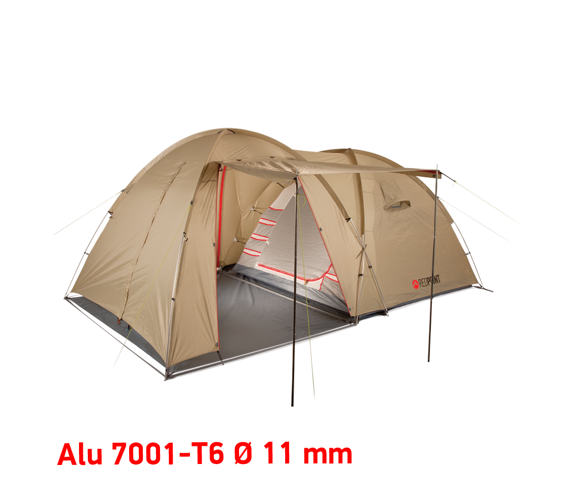 - Дно, як у всіх наметах Red Point, посилено по кутах додатковим шаром тканини. Всі шви проклеєні PU-стрічкою. Рівень водонепроникності дна 5000 мм водяного стовпа.