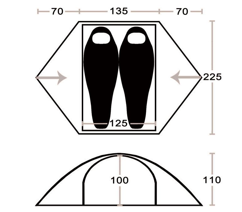 Двомісний трьохсезонний намет з каркасом з DURAWRAP для походів, трекінгу, велотуризму.