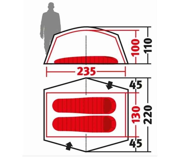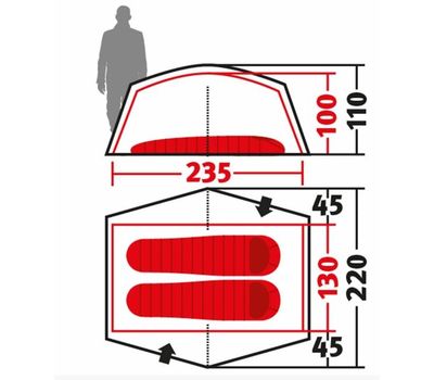 Внутрішній намет (Д х Ш х В): 225 х 125 х 100 см
