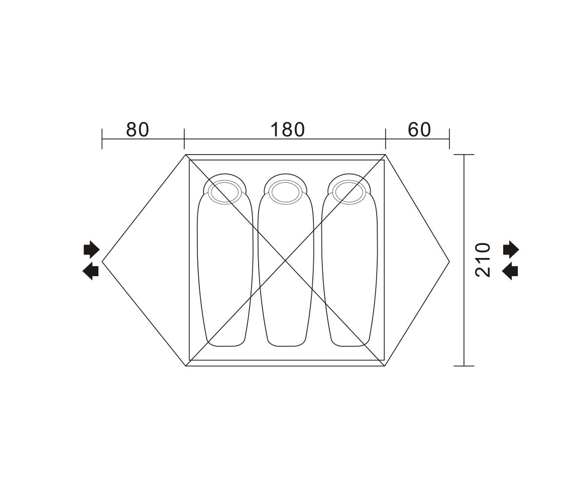 Зовнішній тент: POLYESTER RIP STOP 68D 210T, PU COATING 5000 mm H2O