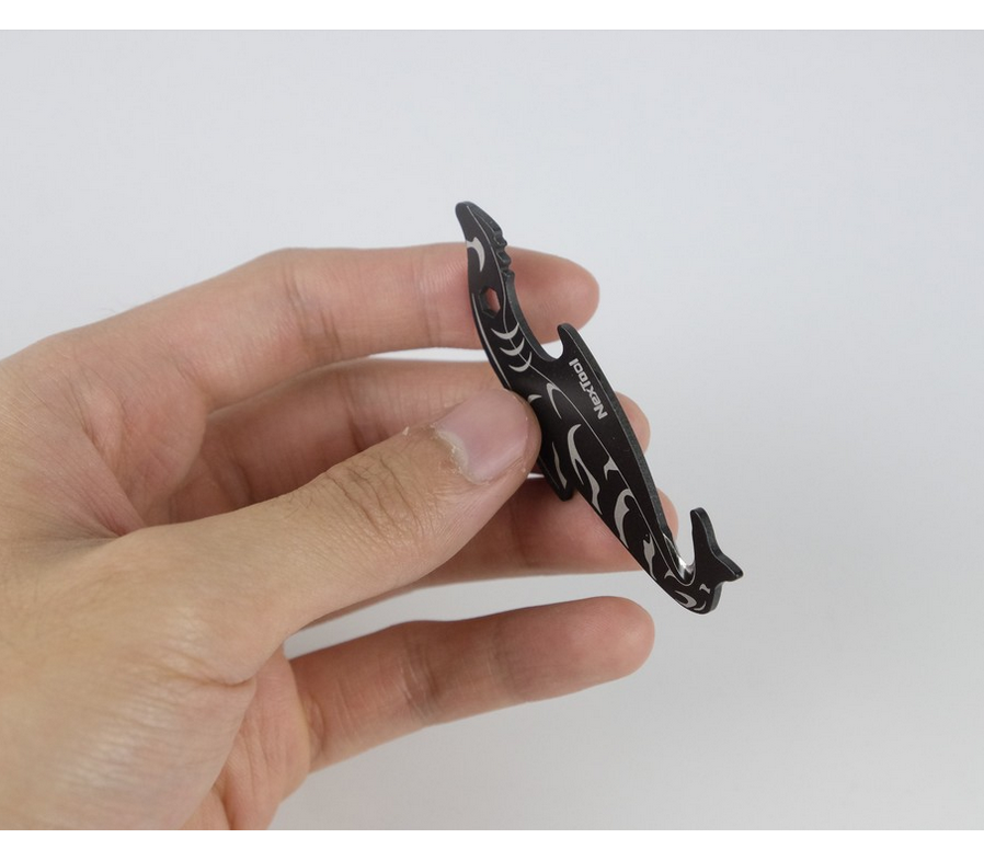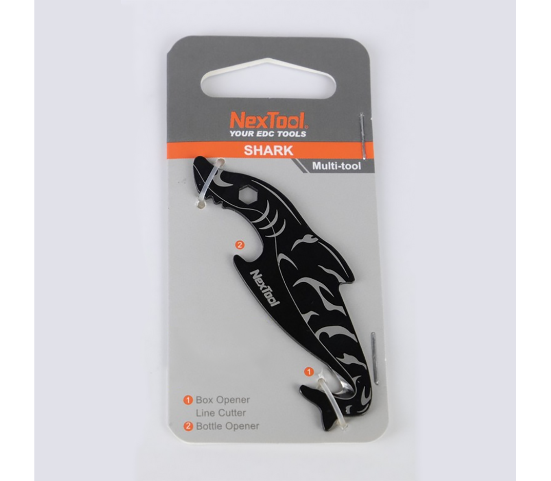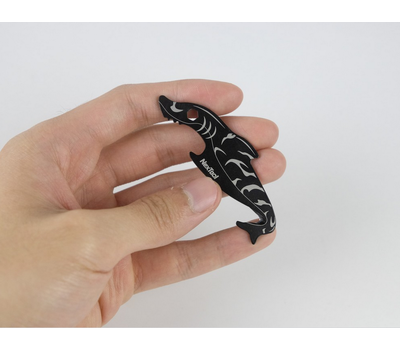 Любителям мінімалізму присвячується. Витончений мультитул, виготовлений з нержавіючої сталі марки 2Cr13, з відмінними ріжучими властивостями. Може вікорістовуватіся в якості ножика, відкривачки для пляшок, замість ножиць. Вам потрібно розкрити коробку, або перерізати мотузку, або відкоркувати тару, а бути може, підпиляти що-небудь – модель KT5521 до послуг користувача. Надійний, безпечний і продуманий мульті інструмент. Цікавий анімалістичний дизайн – форма у вигляді силуету підводного хижака, агресивною, але чарівною, акули. Запросто прикрасити ваші ключі, сумку, чохол для техніки або будь-який інший предмет. Підходить для щоденного застосування.
