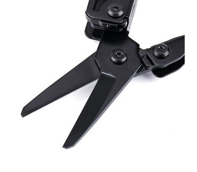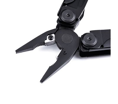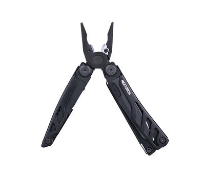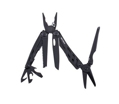 • 16 функцій. Інструмент виконує функції гострогубців, звичайних плоскогубців, ножиць, кусачок для твердого та товстого дроту, серейторної пили, ножа з прямим заточуванням, хрестової та плоскої викруток, рятувального гака, консервного ножа, відкривачки для пляшок, інструмента для зачищення проводів та лінійки. У конструкцію також інтегровано надтвердий склобій з нанокераміки.