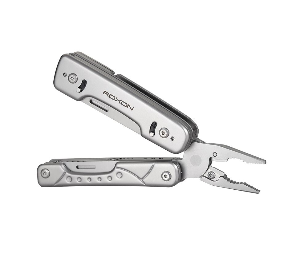 Модель мультитула Roxon Phantom S802 нагадує вже знайомий мульті інструмент Storm S801S. Компактні розміри, надзвичайно зручне використання, багатофункціональність і ефективність. Модель розроблена за принципом класичного мультиинструмента, основні пристосування – плоскогубці. Тут 15 функцій для виконання різних видів робіт на практиці.