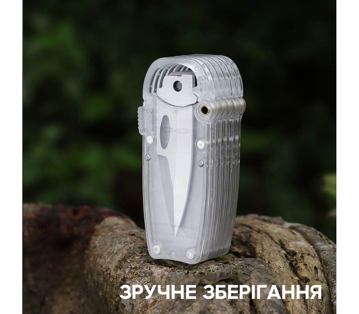 До комплекту від бренду Roxon входять три клинки, які призначені для заміни основного леза у складаних ножах S502, S502U або портативному мультитулі S802. Ці аксесуари дозволяють розширити можливості наявних в арсеналі інструментів, щоб виконувати з їх допомогою широкий спектр завдань у побуті та під час подорожі.