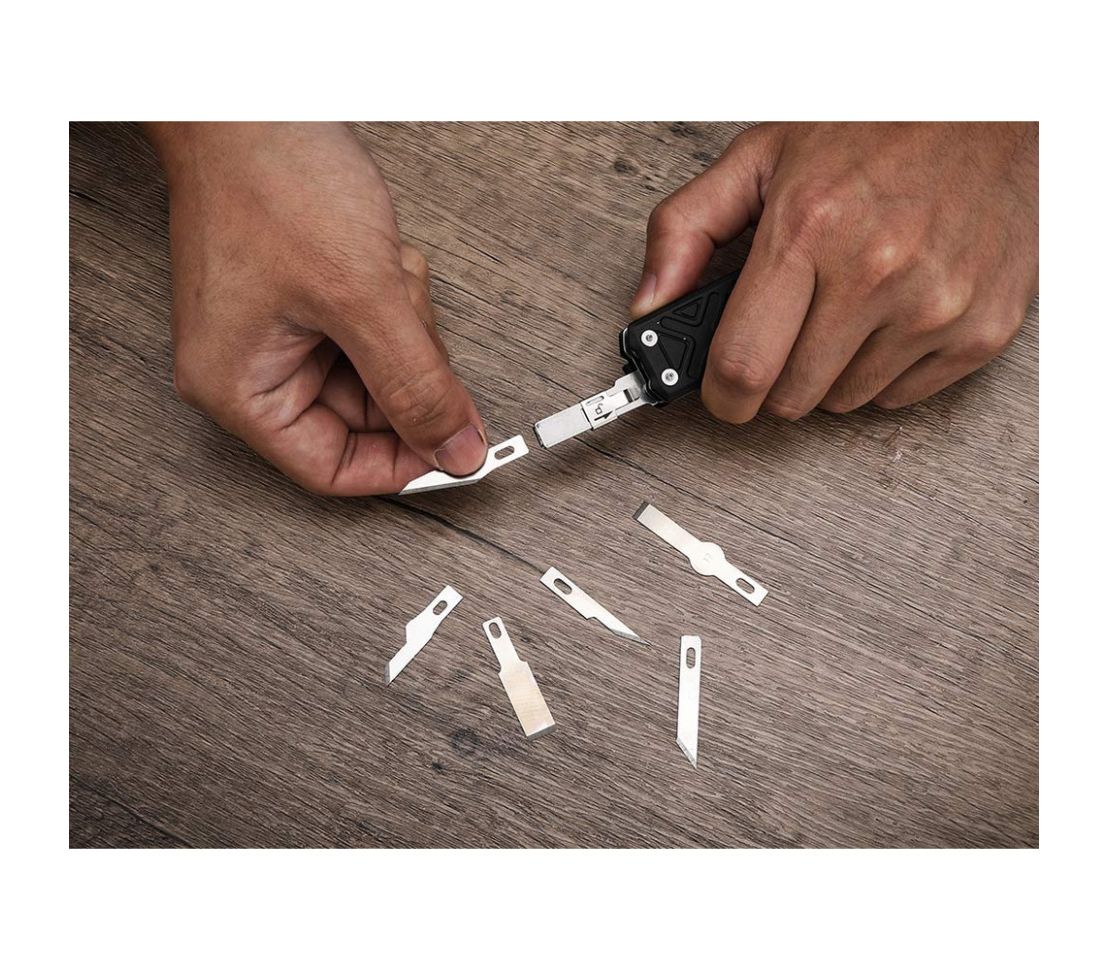 Комплект складається з 13 змінних лез різної форми — кожна адаптована під різний тип роботи, зокрема для точних надрізів і проколів. Леза сумісні з мультитулом NexTool Pocket Tool E1 та розширюють його можливості для більш універсального використання.