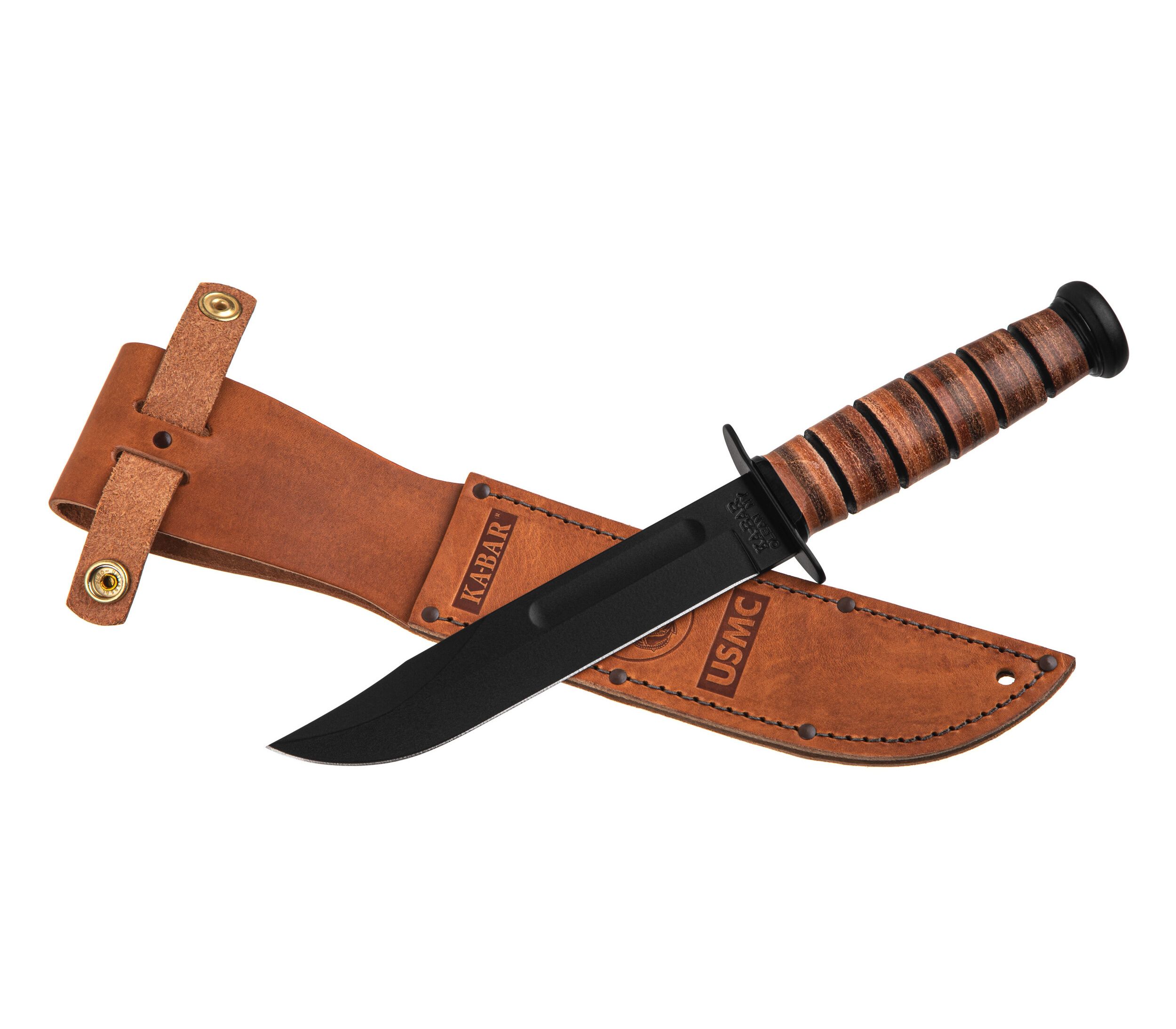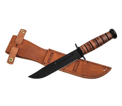 З 1940-х років бойовий / службовий ніж Ka-Bar USMC 7 "був надійним супутником солдатів, морських піхотинців і моряків. Тепер, завдяки більш ніж півстолітнім традиціям, в поєднанні з сучасними інструментами і конструкцією, цей ніж готовий до наступних 50 років служби. Сталь 1095 Cro-Van з впізнаваним clip-point клинком ретельно відшліфована і піддана термообробці, щоб кожен ніж був міцним і довговічним, при цьому залишаючись легким для заточування до бритви. Руків'я з набірної шкіри має знайому овальну форму, його зручно тримати в руці, забезпечуючи при цьому відмінне зчеплення і контроль. Бойовий / універсальний ніж Ka-Bar, надійно розміщений між захистом для пальців і держаком, залишається в руці незалежно від того, чи перебуваєте ви в ближньому бою або прокладаєте шлях крізь густу рослинність. Піхви з коричневої шкіри додають естетичної привабливості ножу з надійним ременем для перенесення.