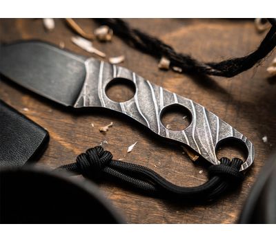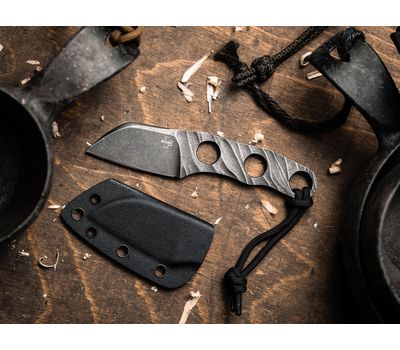 Кажан – це зручний шийний ніж із коротким лезом форми sheepsfoot, який завдяки малій вазі є ідеальним запасним ножем для повсякденного використання. Молодий український дизайнер і виробник ножів зі Львова Олександр Крава надає великого значення естетиці своїх виробів, які переконують купувати їх не тільки в якості надійного інструмента, а й як цікаві аксесуари. "Kazan" повністю виготовлений зі сталі марки D2 і має темну stonewash обробку. Характерні заглиблення по руків'ю для забезпечення малої ваги та тривимірне фрезерування надають ножу особливого вигляду. Модель постачається з темляком, кульковим ланцюжком та чохлом з кайдексу.