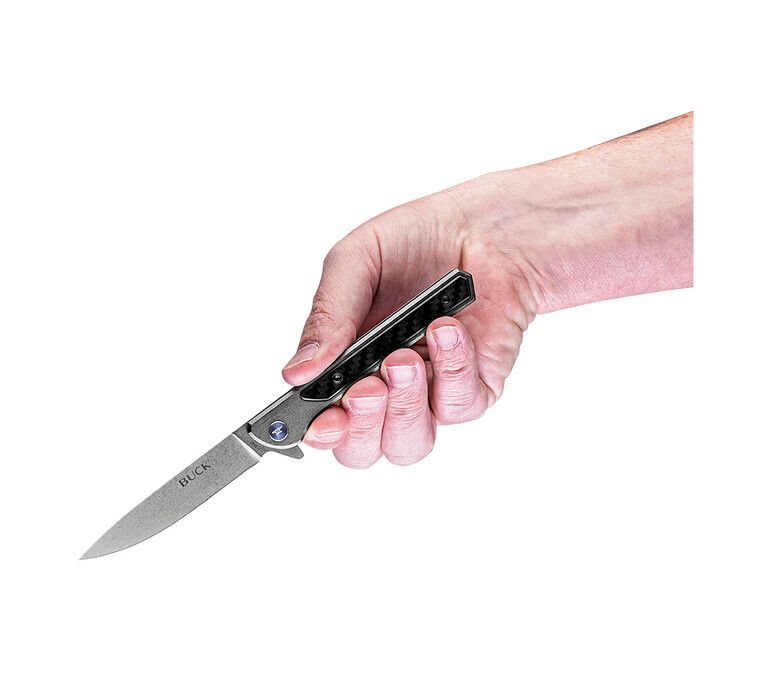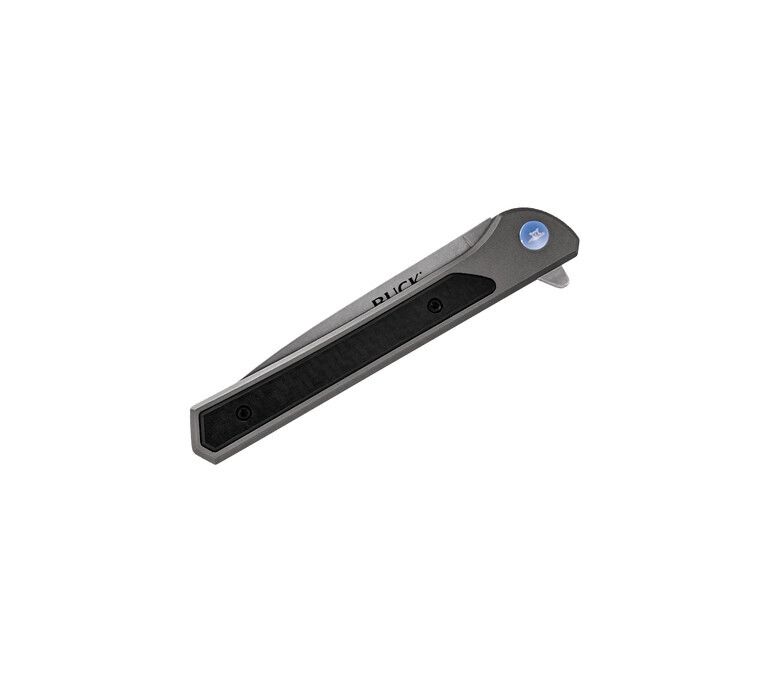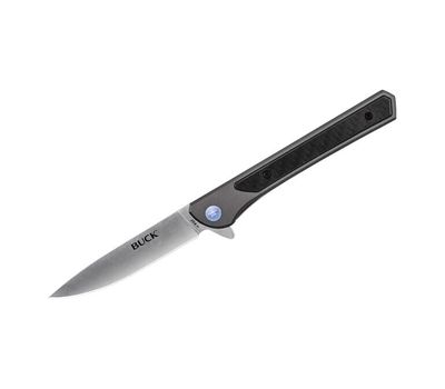Buck 264 Cavalier - це тонкий, стильний джентльменський "складник". Стильна інкрустація рукоятки вуглецевим волоком на сірій алюмінієвой передній частині контрастує з клинком з матової нержавіючої сталі. Конструкція замка зі сталевим каркасом і фліпером на підшипниках забезпечують надійне і легке управління однією рукою.
