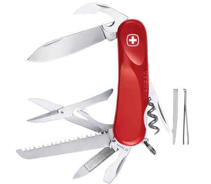 Класичний складаний швейцарський ніж з поліпшеною зручною ручкою і безліччю функцій.