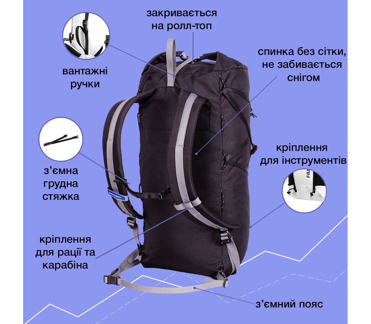 • Розмір мішка підібраний під типовий набір спорядження для одноденного сходження.