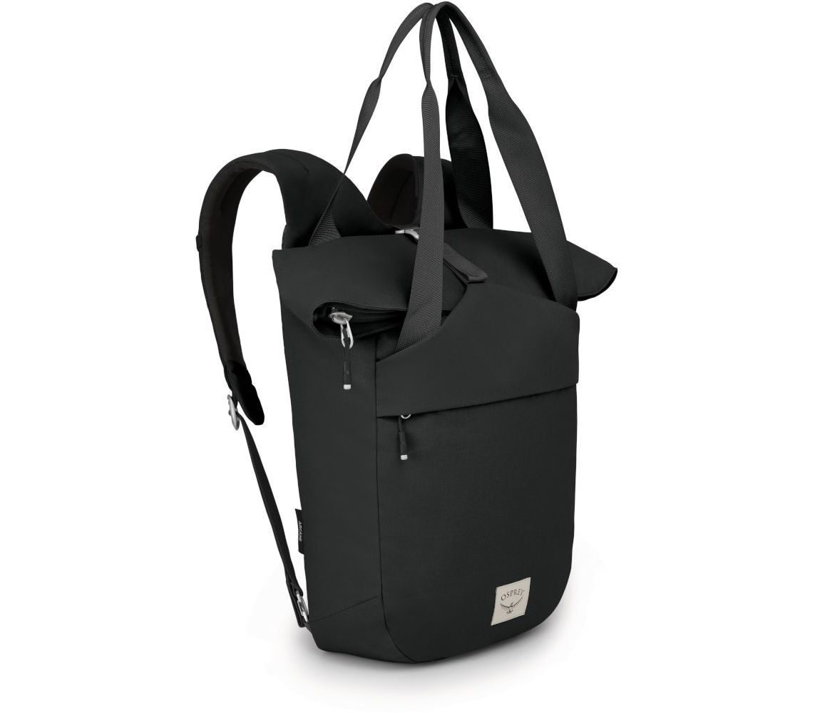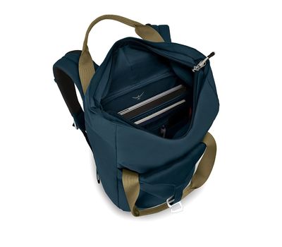 Рюкзак-трансформер на 20л від бренду Osprey. Його можна носити як звичайний рюкзак, або як сумку (лямки ховаються у спеціальне відділення). Виготовлений із Recycled Nylon Fabrics - міцний, перероблений матеріал, який повністю безпечний для людини та навколишнього середовища (PFC-free). Фурнітура металева — надійна та довговічна. Спинка Air Scape із спіненими зонами гарантує комфорт під час носки.