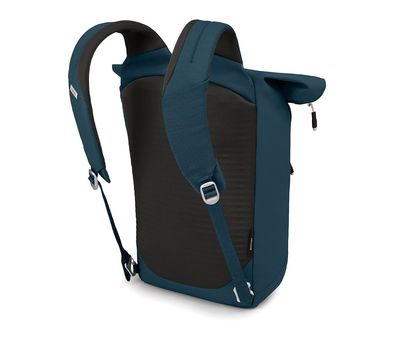 Рюкзак-трансформер на 20л від бренду Osprey. Його можна носити як звичайний рюкзак, або як сумку (лямки ховаються у спеціальне відділення). Виготовлений із Recycled Nylon Fabrics - міцний, перероблений матеріал, який повністю безпечний для людини та навколишнього середовища (PFC-free). Фурнітура металева — надійна та довговічна. Спинка Air Scape із спіненими зонами гарантує комфорт під час носки.