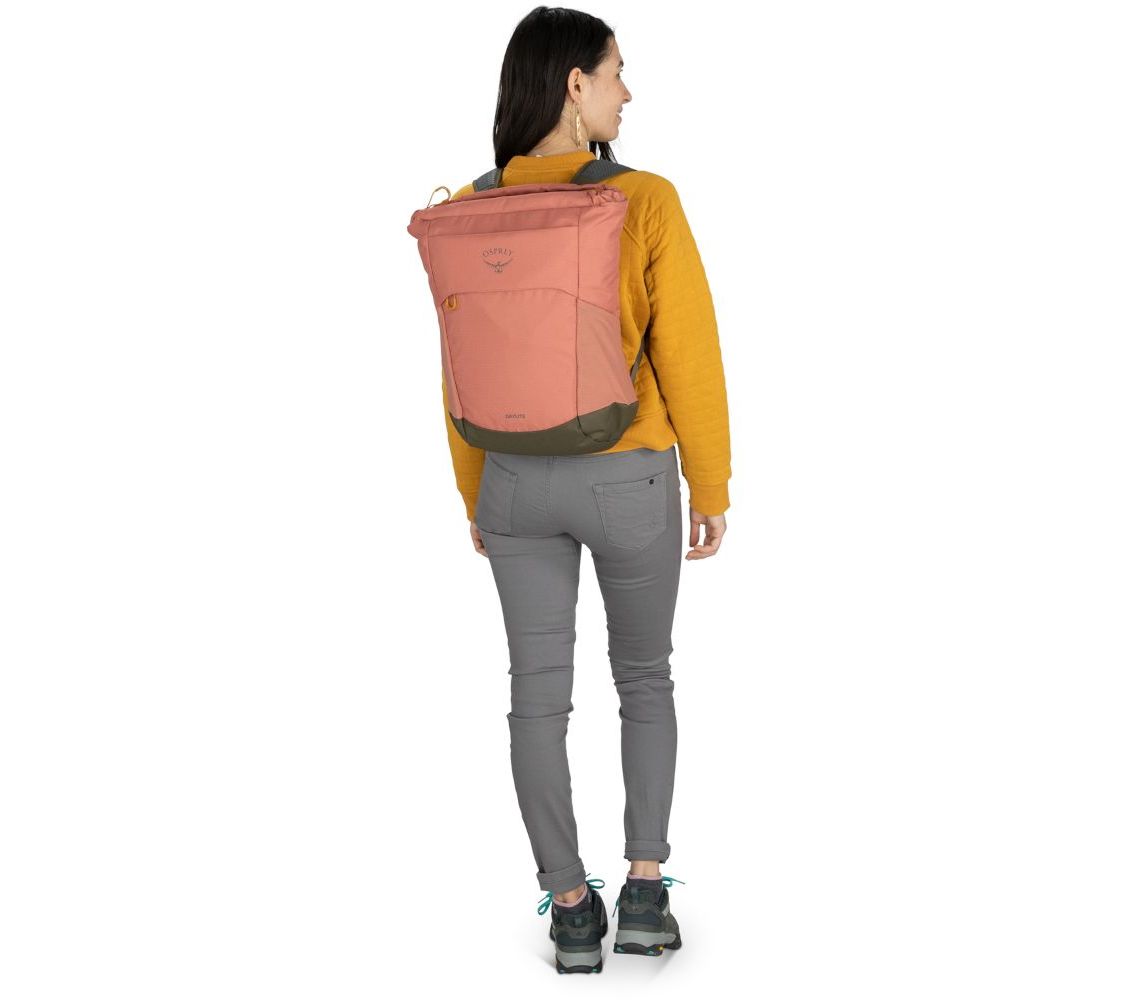 Daylite Tote Pack - це рюкзак-трансформер на 20л від бренду Osprey. Його можна носити як звичайний рюкзак, або як сумку (лямки ховаються у спеціальне відділення). В основному відділі є м`який відсік для ноутбука, місце для папки, канцелярії, телефону та карабін для ключів. У фронтальній частині є горизонтальна кишеня на блискавці. Рюкзак відмінно підійде як для щоденного використання у місті, так і для недовготривалих подорожей.