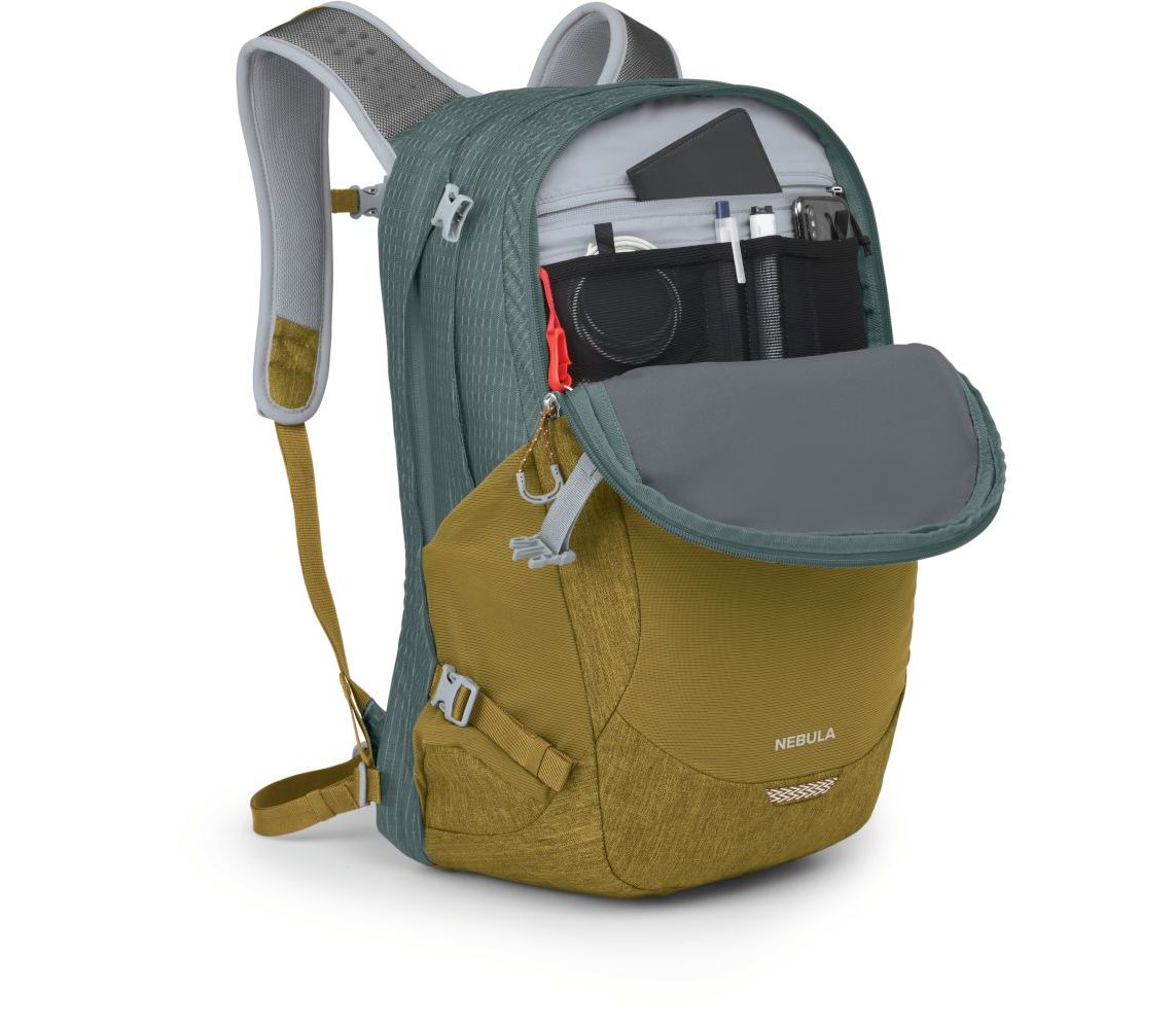 Функціональність та зручність моделі гарантує кишеня-органайзер для канцелярії, щоб необхідні речі завжди були під рукою. Також, є м`яке, захищене від ударів відділення для ноутбука (до 16 дюймів) з прямим доступом, зручно для використання в офісі. Телефон чи окуляри можна помістити до кишені зі спеціальною підкладкою, де речі лишаться неушкодженими. Рюкзак Osprey Nebula - це чудовий вибір для впевнених у собі людей, щоб залишатись стильним щодня.