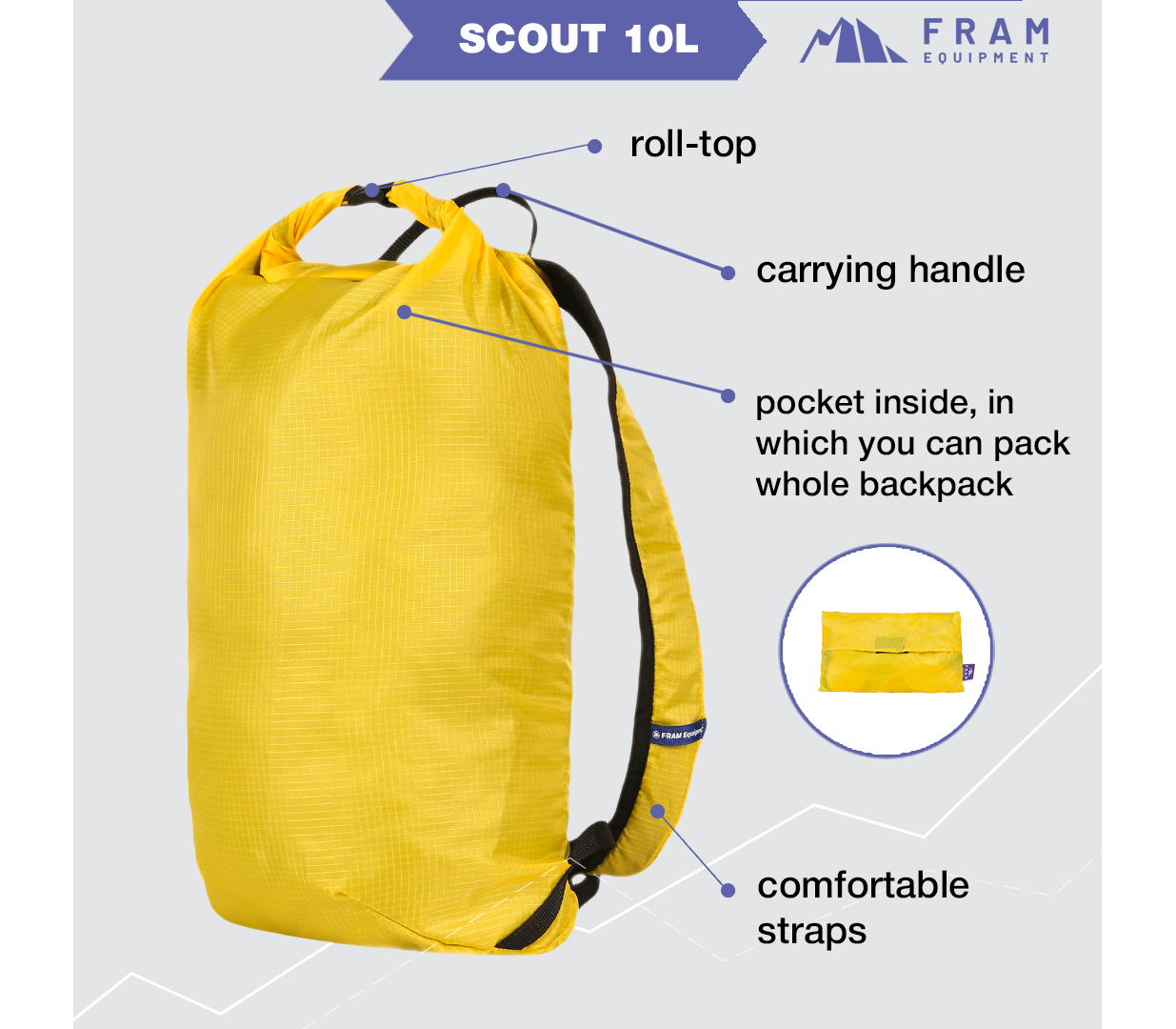 Рюкзачок, який захочеться носити з собою завжди. А з вашим лого чи девізом - він працюватиме як ходяча реклама. Scout 10L - ідеальний рюкзак на подарунки чи мерч. Легкий, яскравий рюкзак - для міста, тренування, одноденної подорожі.