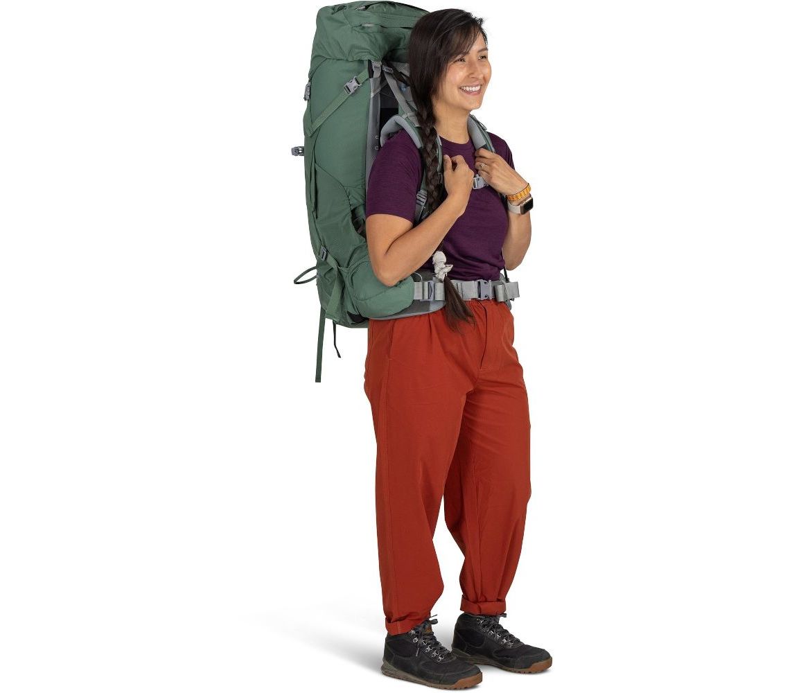 Велике основне відділення має доступ зверху, знизу та збоку для зручного пакування. Кріплення для трекінгових палиць, льодорубів та додаткові компресійні ремені допомагають ефективно організувати спорядження. Знімний верхній клапан можна використовувати як невеликий денний рюкзак. Ariel 55 — ідеальний вибір для туристок, які потребують функціонального та міцного рюкзака для тривалих подорожей.