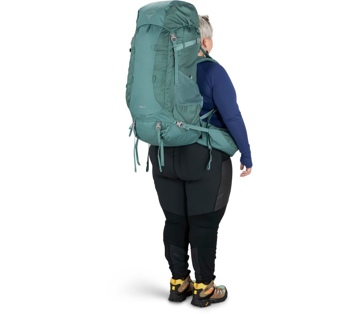 В комплекті інтегрований дощовик, швидкий доступ до нижнього клапану, покращена кишеня для питної системи. Osprey посилив матеріали – виготовлений з переробленого поліестеру 600D з DWR обробкою. А також спростив функціонал для кращого використання. Що точно кидається у очі – це новий дизайн та жодних зайвих деталей. Усі ці, на перший погляд незначні та проте важливі дрібниці, зменшили вагу наплічника. Відтак, Viva 65 важить 1,8кг
